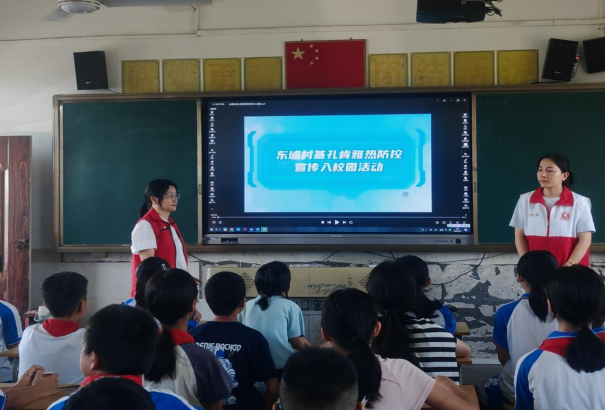 同時(shí)為提升學(xué)生對(duì)基孔肯雅熱的認(rèn)知水平與自我防護(hù)能力,提升學(xué)生對(duì)基孔肯雅熱的認(rèn)知與防控能力,通過(guò)學(xué)生帶動(dòng)家庭,家庭影響社會(huì)的聯(lián)動(dòng)效應(yīng),東埔村文明實(shí)踐站組織開(kāi)展《基孔肯雅熱防控宣傳》進(jìn)校園活動(dòng)。
