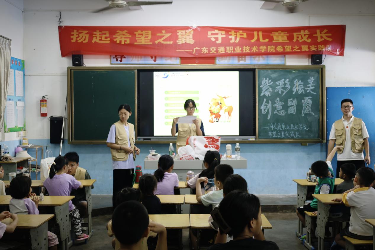 8月16日,廣東交通職業(yè)技術(shù)學(xué)院希望之翼實(shí)踐隊(duì)走進(jìn)河?xùn)|鎮(zhèn),為孩子們精心策劃并舉辦了一場以“紫彩繪美,創(chuàng)意留霞”為主題的精彩活動(dòng),為孩子們帶來了豐富多彩、充滿歡樂與驚喜的一天。