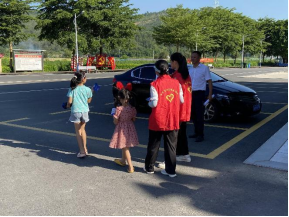 課堂結束后,青少年們當起了交通安全知識小小宣傳員,跟著文明實踐志愿者一起開展入戶宣傳活動,在宣傳的過程中,不僅進一步加深了相關知識的印象,還鍛煉了語言表達能力,豐富了假期體驗。