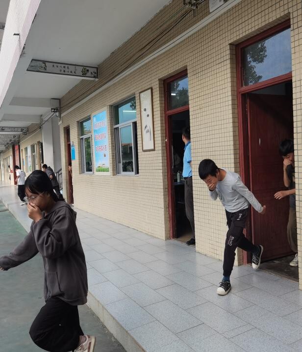 (師生達安全集結(jié)點,各班級迅速集合清點人數(shù))