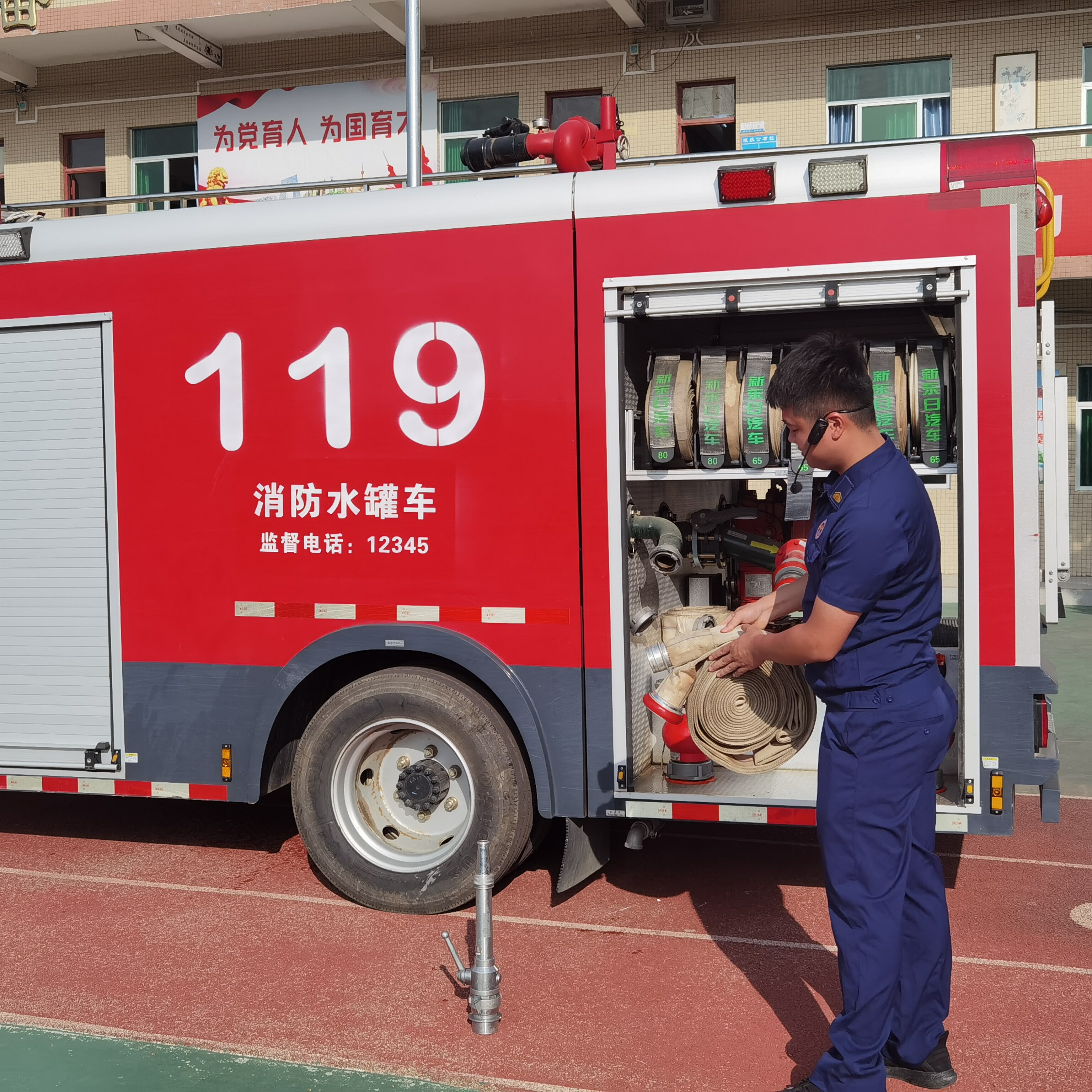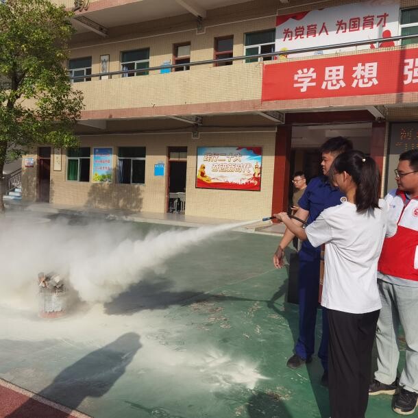 最后,鎮(zhèn)消防所專職消防員為全體師生進行消防培訓(xùn),講解了防火、滅火、逃生、滅火工具使用等內(nèi)容?!盎馂?zāi)發(fā)生怎么辦?”、“大火封門怎么辦?”、“突遇火災(zāi)怎么跑、怎么捂鼻?”、“多高的樓層可以跳、怎么跳?”“煤氣泄氣著火后怎么辦”,現(xiàn)場以提問的方式進行互動,講解內(nèi)容生動有趣,取到較好效果。同時,還系統(tǒng)講解了消防應(yīng)急照明燈、手提式干粉滅火器、消防水槍、消防水帶等滅火工具的使用方法,并讓學(xué)生代表現(xiàn)場進行實際操作,每位學(xué)生都按照講解的要點,做到掌握精準(zhǔn)。