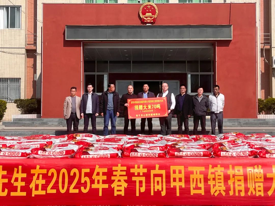 在2025年春節(jié)來臨之際,香港恒裕集團董事局主席龔俊龍先生再次為甲西鎮(zhèn)困難群眾捐贈70噸大米,給困難群眾送去愛心和溫暖,幫助困難群眾解決實際問題,為助力甲西高質(zhì)量發(fā)展貢獻鄉(xiāng)賢力量。