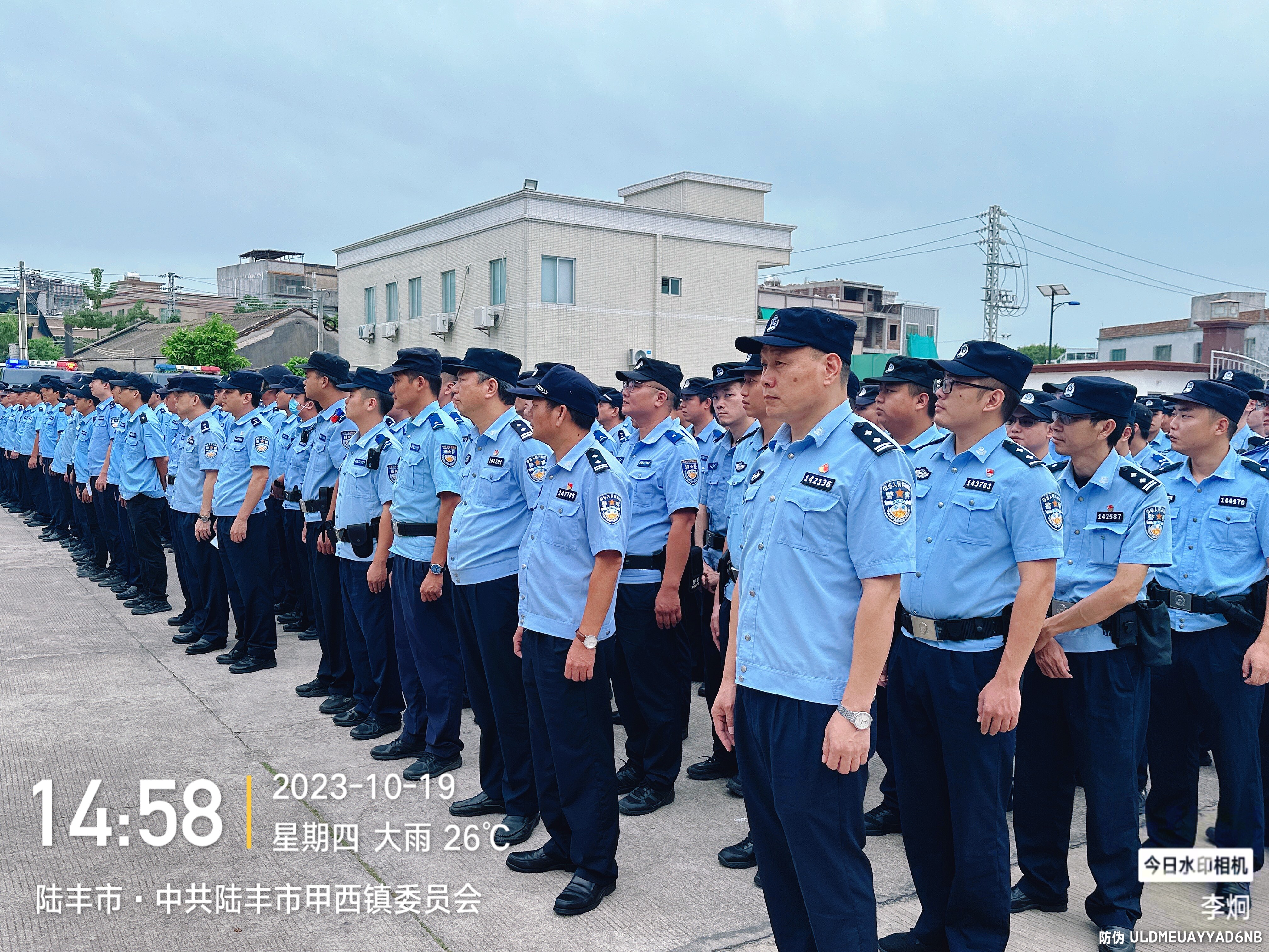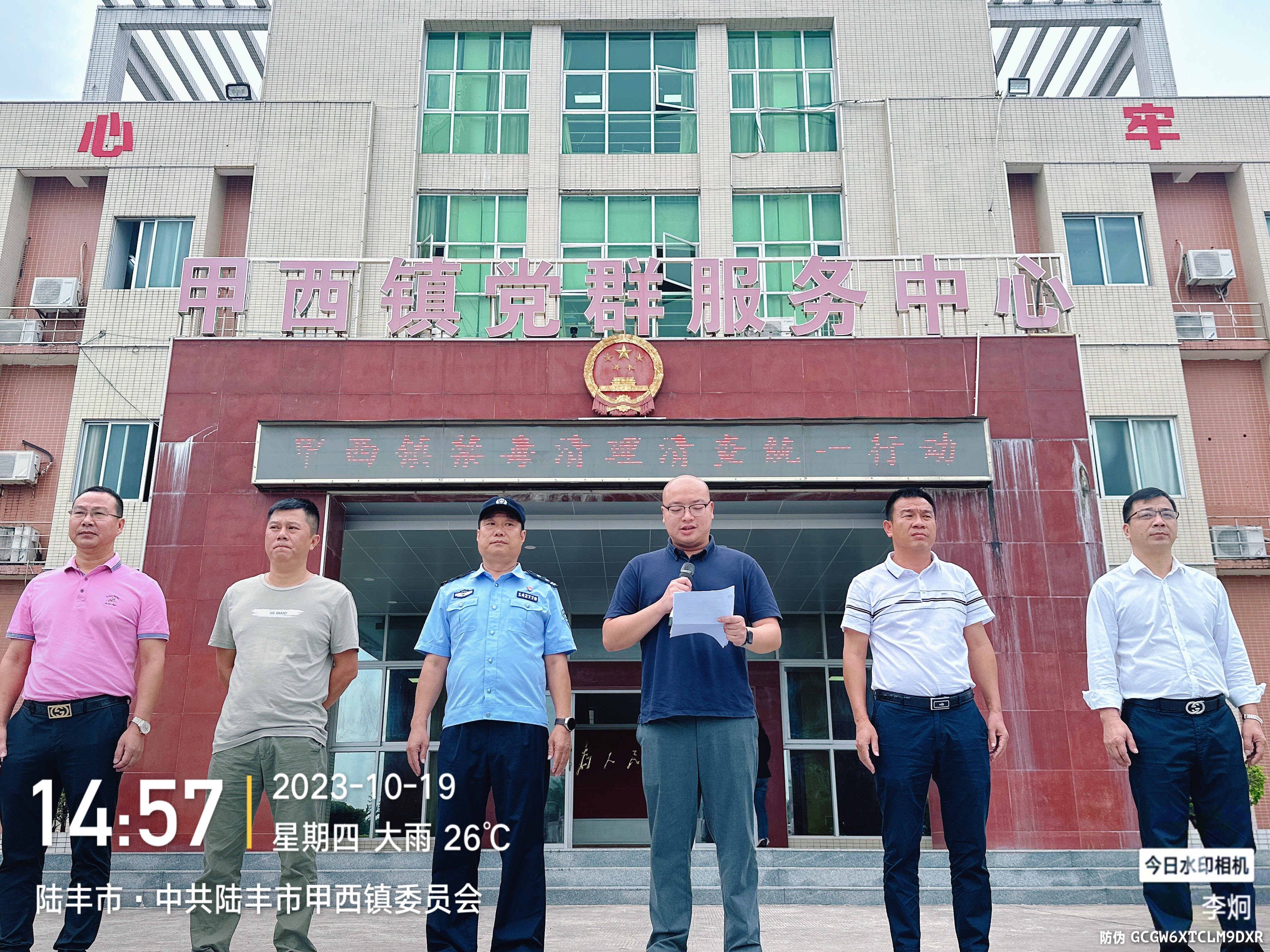 下午3點整,全體行動人員配齊裝備,在鎮(zhèn)府大院列隊集合整裝待發(fā)。陸豐市政協(xié)副主席、鎮(zhèn)黨委書記傅錦沖任本次行動總指揮,甲西鎮(zhèn)黨委副書記、鎮(zhèn)長劉嘉澤作行動前動員講話,市公安局禁毒大隊負責(zé)人林衛(wèi)東作具體行動部署,鎮(zhèn)黨委副書記林俊生,鎮(zhèn)黨委委員、人武部長林良榜,副鎮(zhèn)長鐘文軍,鎮(zhèn)人大副主席朱春偉等到現(xiàn)場帶隊參加行動。