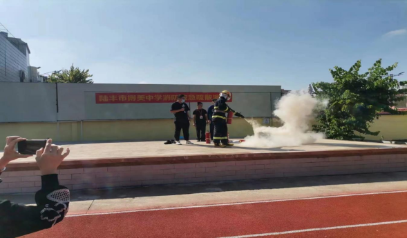 當(dāng)天,組織學(xué)生列隊(duì)在操場后,消防所工作人員為學(xué)生們發(fā)放相關(guān)宣傳資料,用通俗易懂的語言向?qū)W生們介紹了器材裝備、安全指示標(biāo)志、日常防火小常識及消防法等內(nèi)容,讓同學(xué)們深刻了解火災(zāi)的危害性,掌握自救、逃生知識和自我保護(hù)技能。接著為全體師生進(jìn)行消防器材介紹、滅火實(shí)踐培訓(xùn)、防毒面罩佩戴講解,進(jìn)一步提高了師生們的防火意識和發(fā)生火災(zāi)時的逃生技巧,提高了師生們緊急應(yīng)變能力。