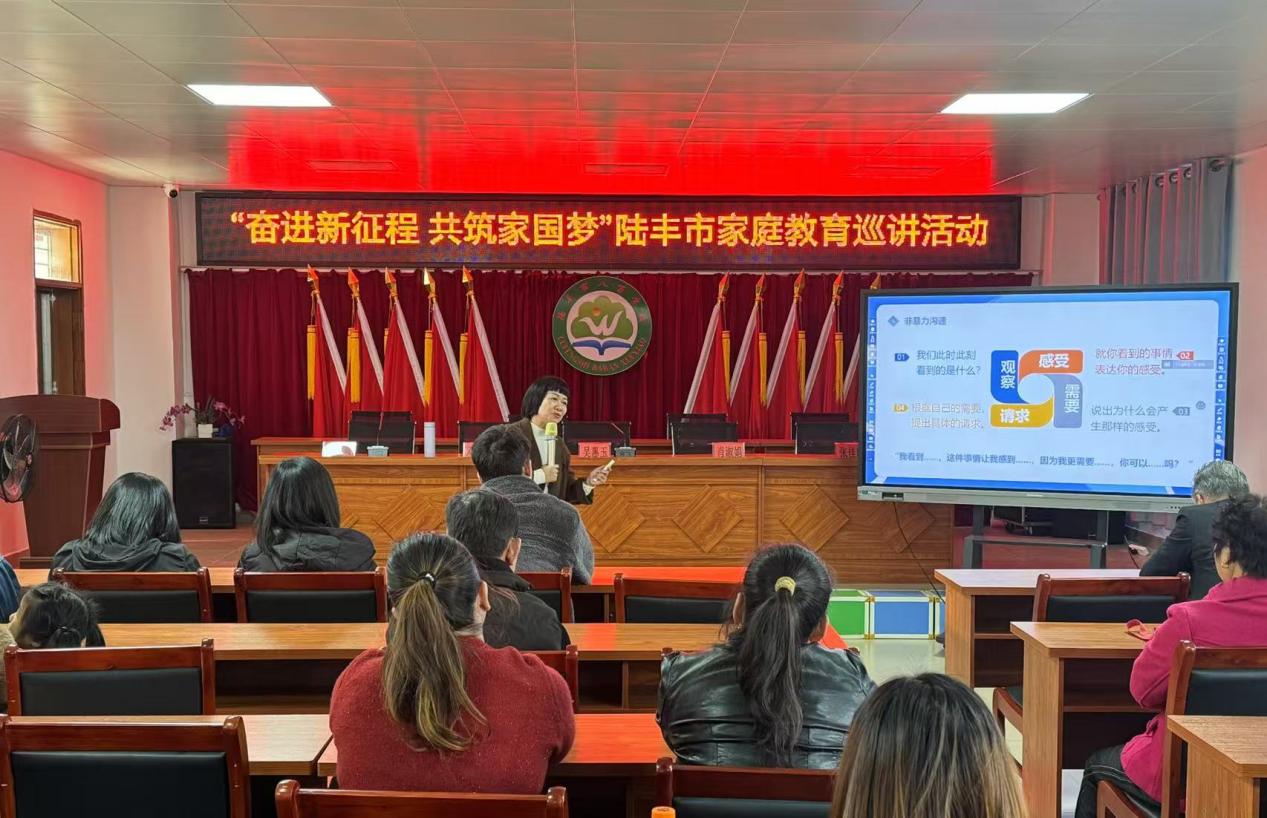 為持續(xù)提升八萬(wàn)轄區(qū)家庭家教家風(fēng)建設(shè)水平,幫助家長(zhǎng)更新家庭教育理念、掌握科學(xué)的家庭教育知識(shí)和方法,建立良好親子關(guān)系,引領(lǐng)社會(huì)主義家庭文明新風(fēng)尚,12月19日下午,八萬(wàn)鎮(zhèn)婦聯(lián)聯(lián)合八萬(wàn)學(xué)校開(kāi)展“奮進(jìn)新征程 共筑家國(guó)夢(mèng)”陸豐市家庭教育巡講活動(dòng),活動(dòng)邀請(qǐng)了陸豐市教師發(fā)展中心心理健康學(xué)科中心組組長(zhǎng)鄧雪花為大家授課。陸豐市婦聯(lián)家庭和兒童工作部部長(zhǎng)吳惠玉、陸豐市教育局婦工委負(fù)責(zé)人肖淑娟、八萬(wàn)鎮(zhèn)婦聯(lián)副主席張佳欣、八萬(wàn)學(xué)校副校長(zhǎng)吳桂氽出席活動(dòng)并講話,八萬(wàn)學(xué)校1-2年級(jí)的80多位家長(zhǎng)到場(chǎng)聆聽(tīng)了講座。