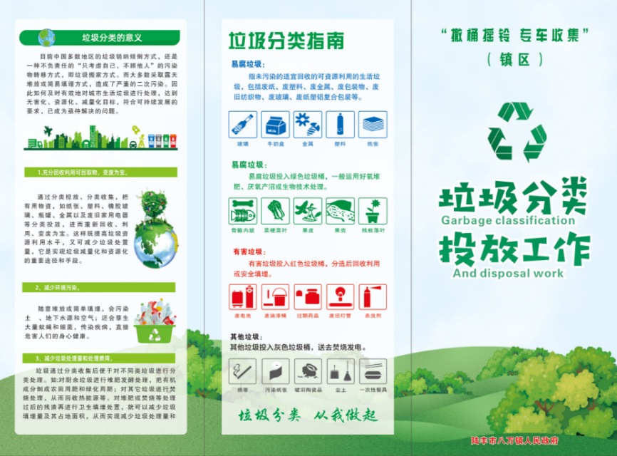 制作八萬(wàn)鎮(zhèn)垃圾分類投放工作宣傳手冊(cè)