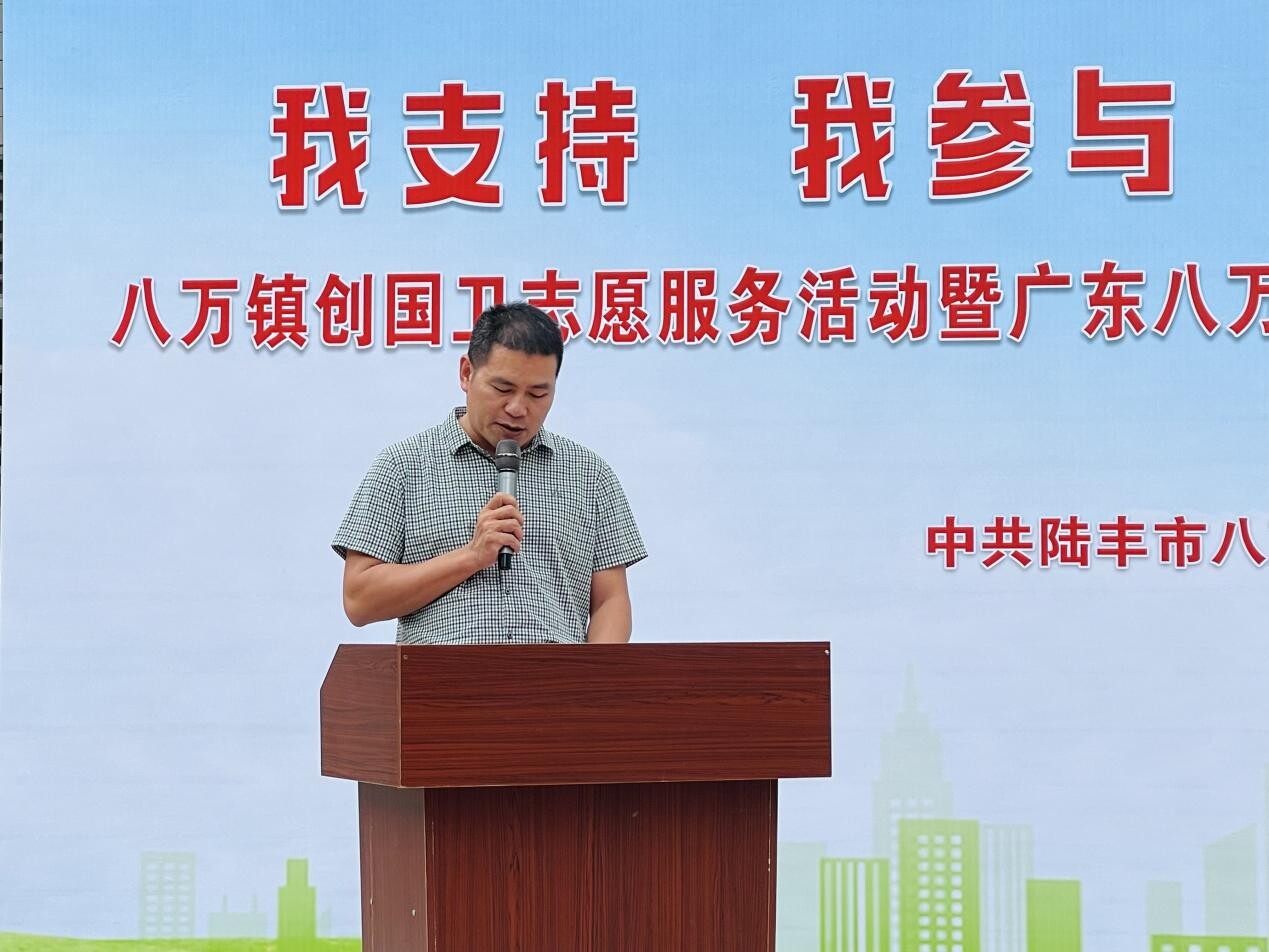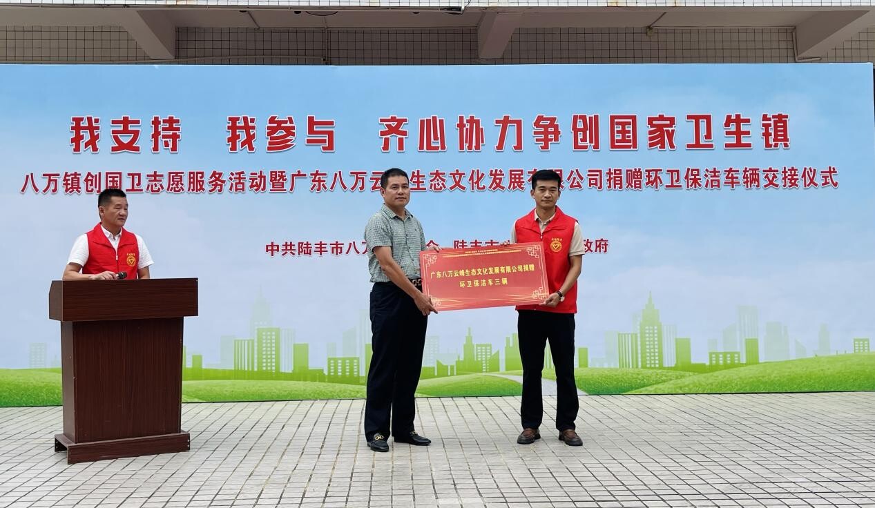 “我支持,我參與,齊心協(xié)力爭創(chuàng)國家衛(wèi)生鎮(zhèn)”,11月11日,八萬鎮(zhèn)舉行創(chuàng)國衛(wèi)志愿服務活動暨廣東八萬云峰生態(tài)文化發(fā)展有限公司捐贈環(huán)衛(wèi)保潔車輛交接儀式。