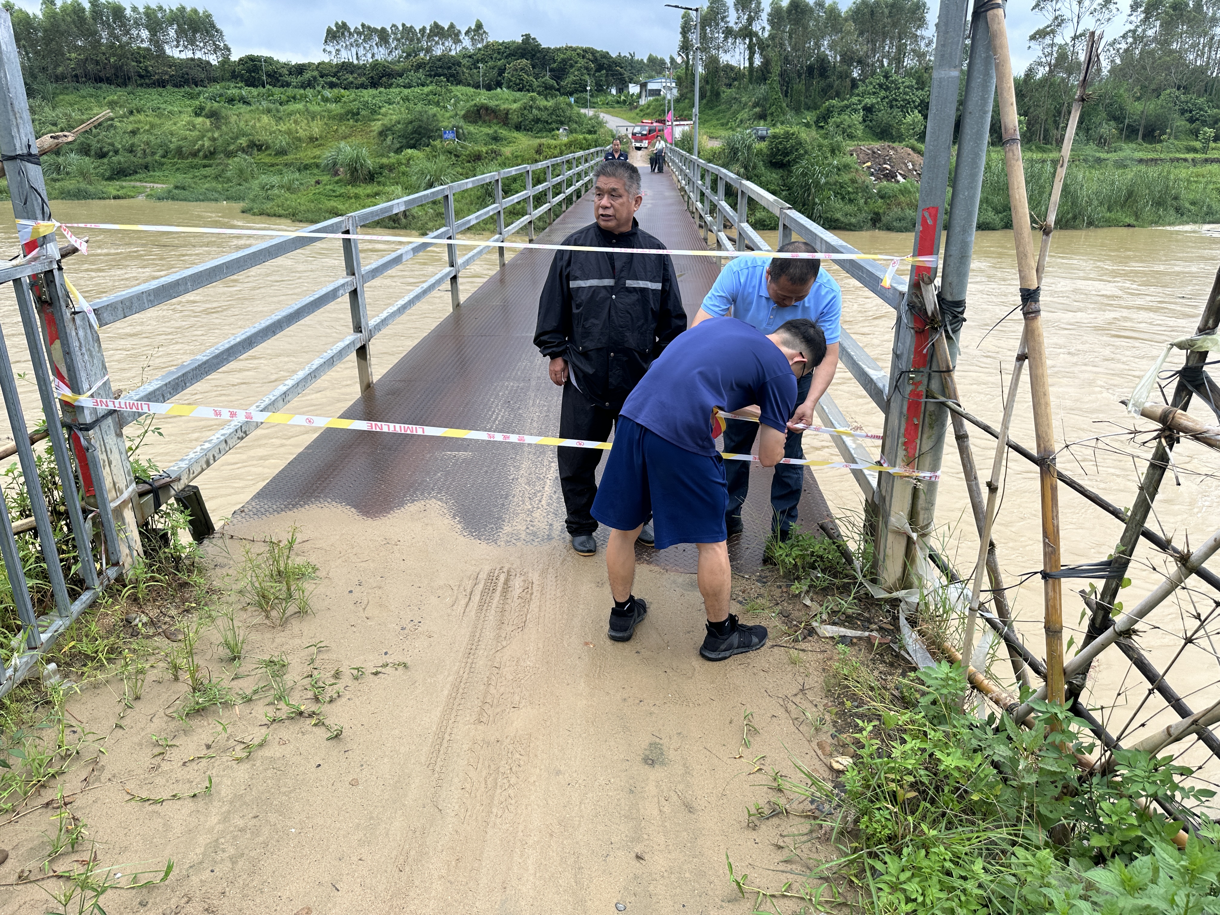 2024年7月26日起,受臺風“格美”影響,陸豐市大安鎮(zhèn)出現(xiàn)持續(xù)強降雨,大安鎮(zhèn)黨委、政府組織開展安全隱患排查工作,經(jīng)分析研判,決定對高風險區(qū)域翰田--黃塘臨時鐵橋采取臨時封閉處置,并安排專人定期巡查。