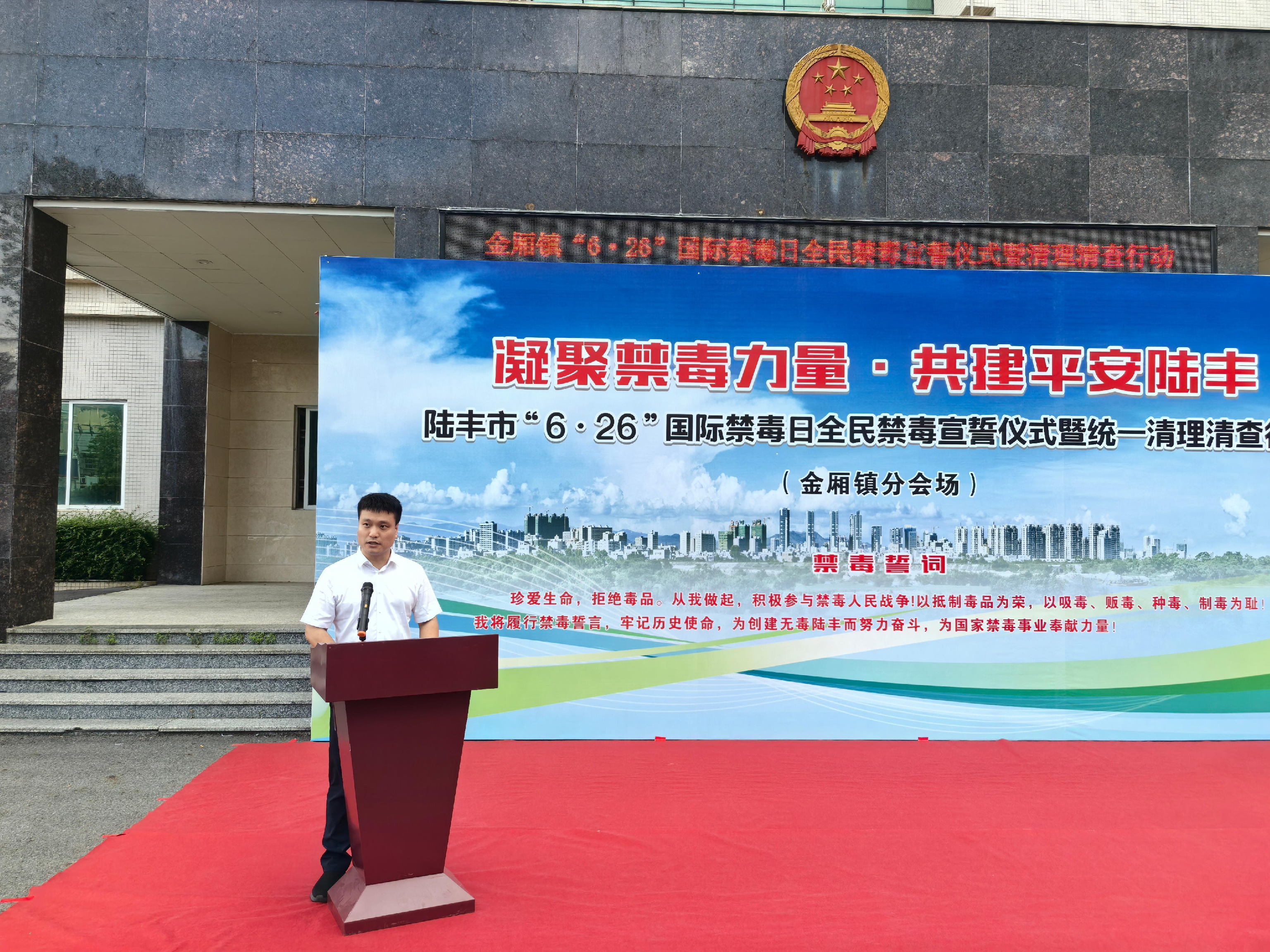 6 月 26 日上午,在第 38 個國際禁毒日來臨之際,金廂 鎮(zhèn)積極開展全民禁毒宣誓儀式暨統(tǒng)一清理清查行動。此次活 動圍繞“凝聚禁毒力量·共建平安陸豐”主題,動員廣大干 部職工、社會各界積極參與禁毒斗爭,依法履行禁毒職責(zé)和 義務(wù),進一步推動形成全民行動,禁絕毒品的良好氛圍。