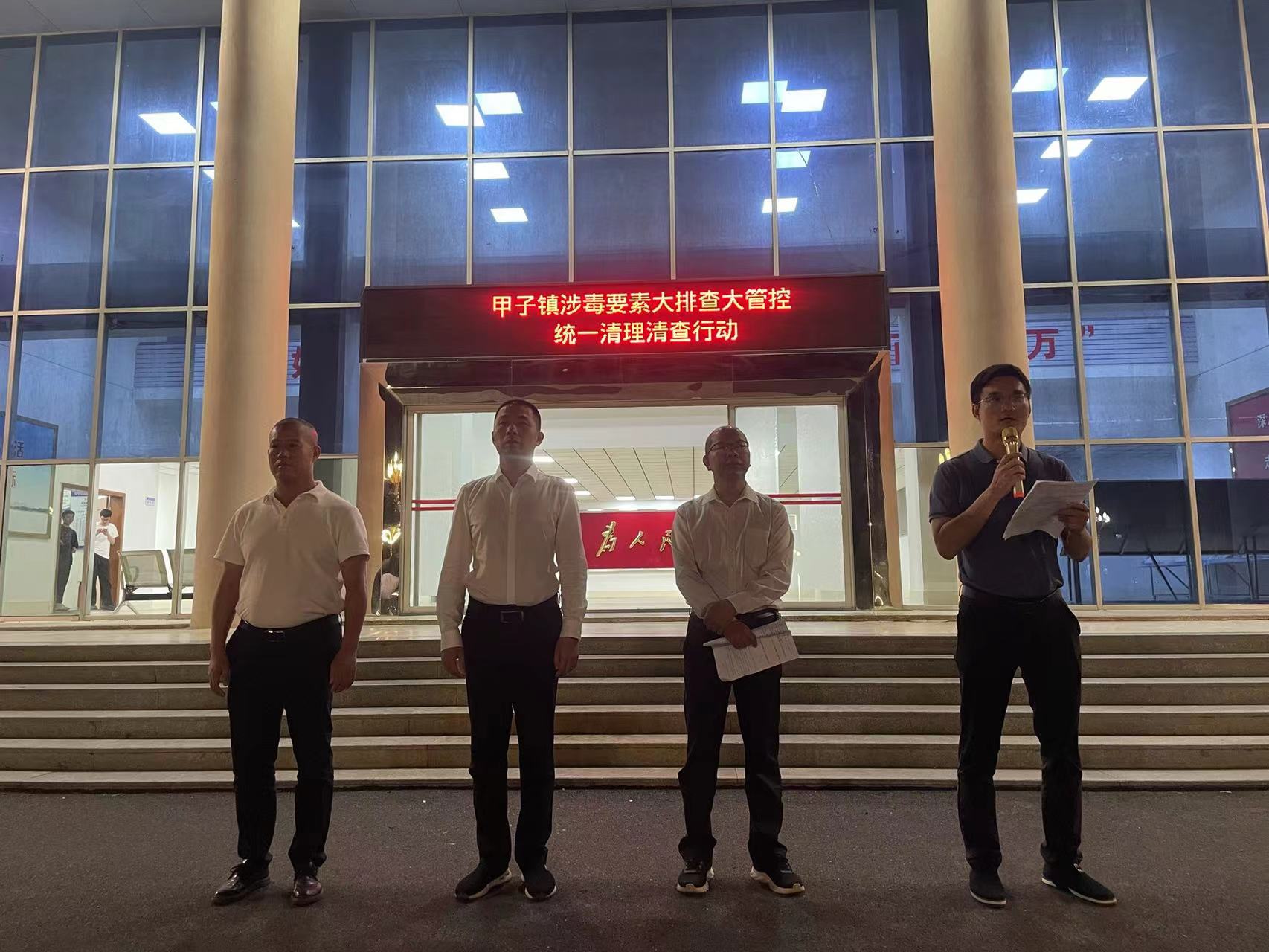 為進(jìn)一步擠壓涉毒活動(dòng)空問,鞏固禁毒成果,結(jié)合我鎮(zhèn)禁毒示范創(chuàng)建及“10.18”專項(xiàng)行動(dòng)部署,嚴(yán)厲打擊涉毒違法犯罪活動(dòng),嚴(yán)防制毒活動(dòng)復(fù)發(fā),營造全民禁毒的濃烈氛圍,堅(jiān)決維護(hù)甲子鎮(zhèn)社會(huì)治安大局平安穩(wěn)定。鎮(zhèn)黨委、政府決定于今晚組織甲子鎮(zhèn)全體干部職工、派出所所有警力、村(社區(qū))兩委干部、掛職民警及網(wǎng)格聯(lián)防大隊(duì)共 425 人,在甲子鎮(zhèn)轄區(qū)范圍內(nèi)集中力量、重點(diǎn)突擊,開展涉毒要素大排查大管控統(tǒng)一清理清查行動(dòng)。