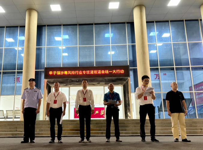 為進(jìn)一步確保我鎮(zhèn)轄區(qū)社會治安大局持續(xù)穩(wěn)定,鞏固我鎮(zhèn)禁毒形勢持續(xù)向好態(tài)勢,狠抓涉毒風(fēng)險行業(yè)場所管理工作特別是加強(qiáng)群租房、酒店、網(wǎng)約房的排查管控工作,建立長效工作機(jī)制,形成嚴(yán)打毒品違法犯罪的高壓態(tài)勢,根據(jù)鎮(zhèn)黨委、政府統(tǒng)一部署,結(jié)合《甲子鎮(zhèn)涉毒風(fēng)險行業(yè)場所清理清查專項行動方案》,于2024年10月22日晚8點,組織鎮(zhèn)府全體干部、職工,派出所全部警力、村(社區(qū))“兩委”千部、網(wǎng)格聯(lián)防大隊共388 人,在甲子鎮(zhèn)轄區(qū)范圍內(nèi)開展甲子鎮(zhèn)涉毒風(fēng)險行業(yè)專項清理清查統(tǒng)一大行動。
