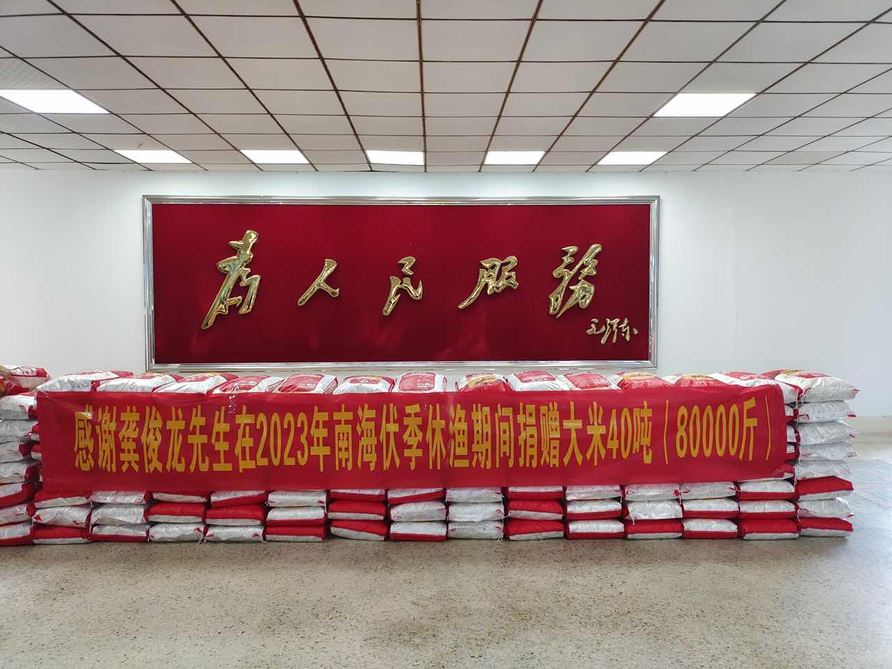 甲子鎮(zhèn)舉行2023年度龔俊龍先生南海休漁期間捐贈(zèng)大米儀式