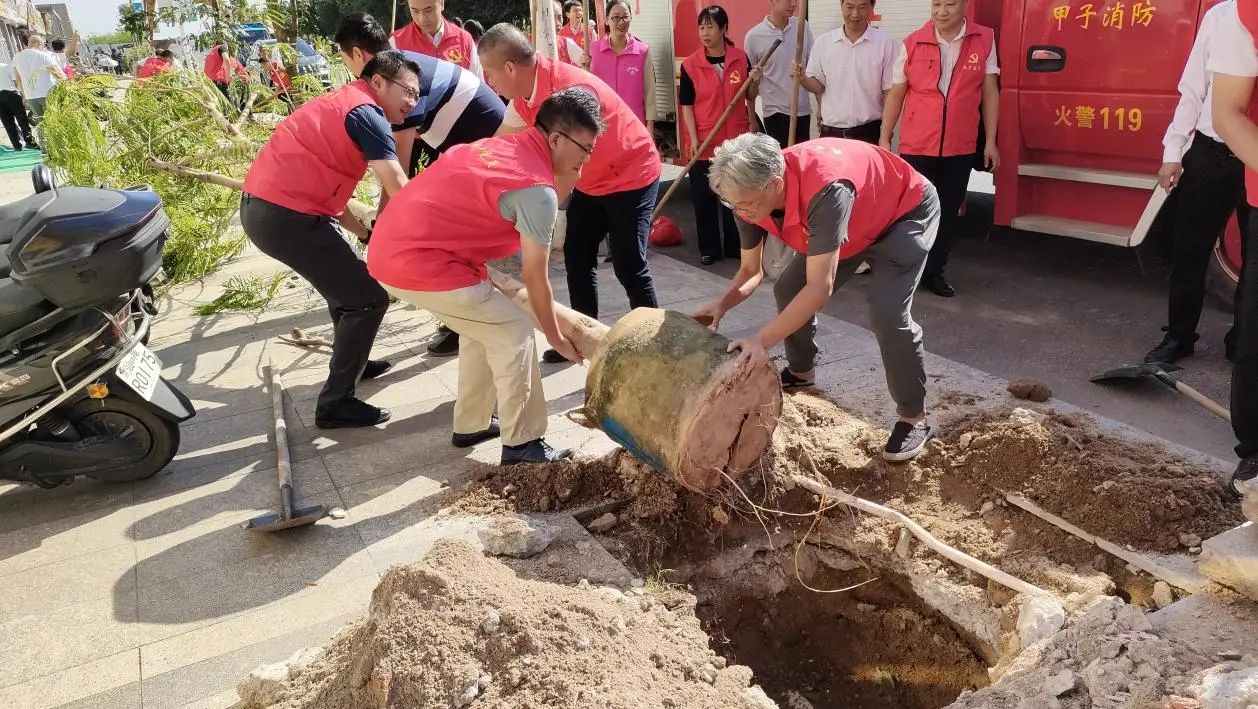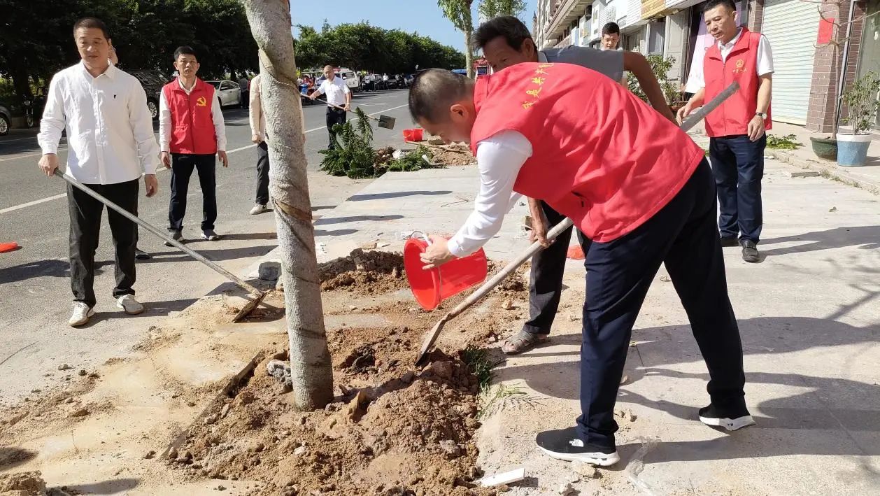 活動(dòng)現(xiàn)場(chǎng),或三人一組,或五人一隊(duì),徐鴻亮同志帶領(lǐng)眾人揮鍬鏟土、扶苗培土、夯實(shí)土層。挖坑、扶苗、壓土、澆水,各環(huán)節(jié)銜接有序,配合默契,現(xiàn)場(chǎng)一片繁忙有序、干勁十足的景象。歷經(jīng)2個(gè)小時(shí)的辛勤勞作,一株株香樟樹、鳳凰樹、鐵刀木樹苗錯(cuò)落有致,迎風(fēng)挺立,煥發(fā)出無(wú)限生機(jī)與活力。