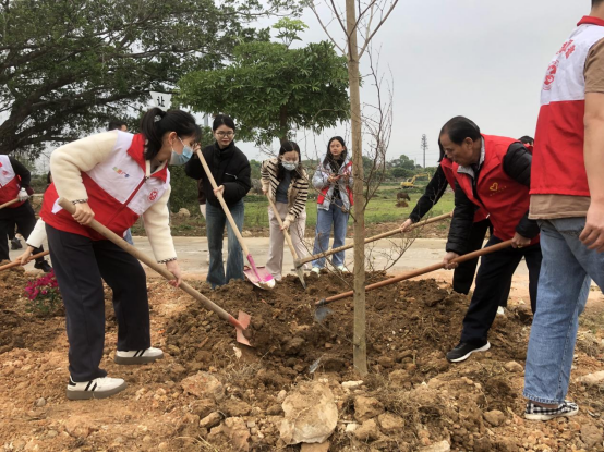 活動(dòng)中,巾幗志愿者們熱情高漲地投入植樹活動(dòng)中。大家分組配合,分工協(xié)作,干勁十足,有人忙著搬運(yùn)樹苗、有人忙著揮鍬鏟土、有人忙著培土澆水,有人細(xì)心地清除雜物,每處細(xì)節(jié)力求做到最好,忙得不亦樂乎。經(jīng)過大家的共同努力,整齊的苗木迎風(fēng)挺立,為內(nèi)湖增添了綠色活力。