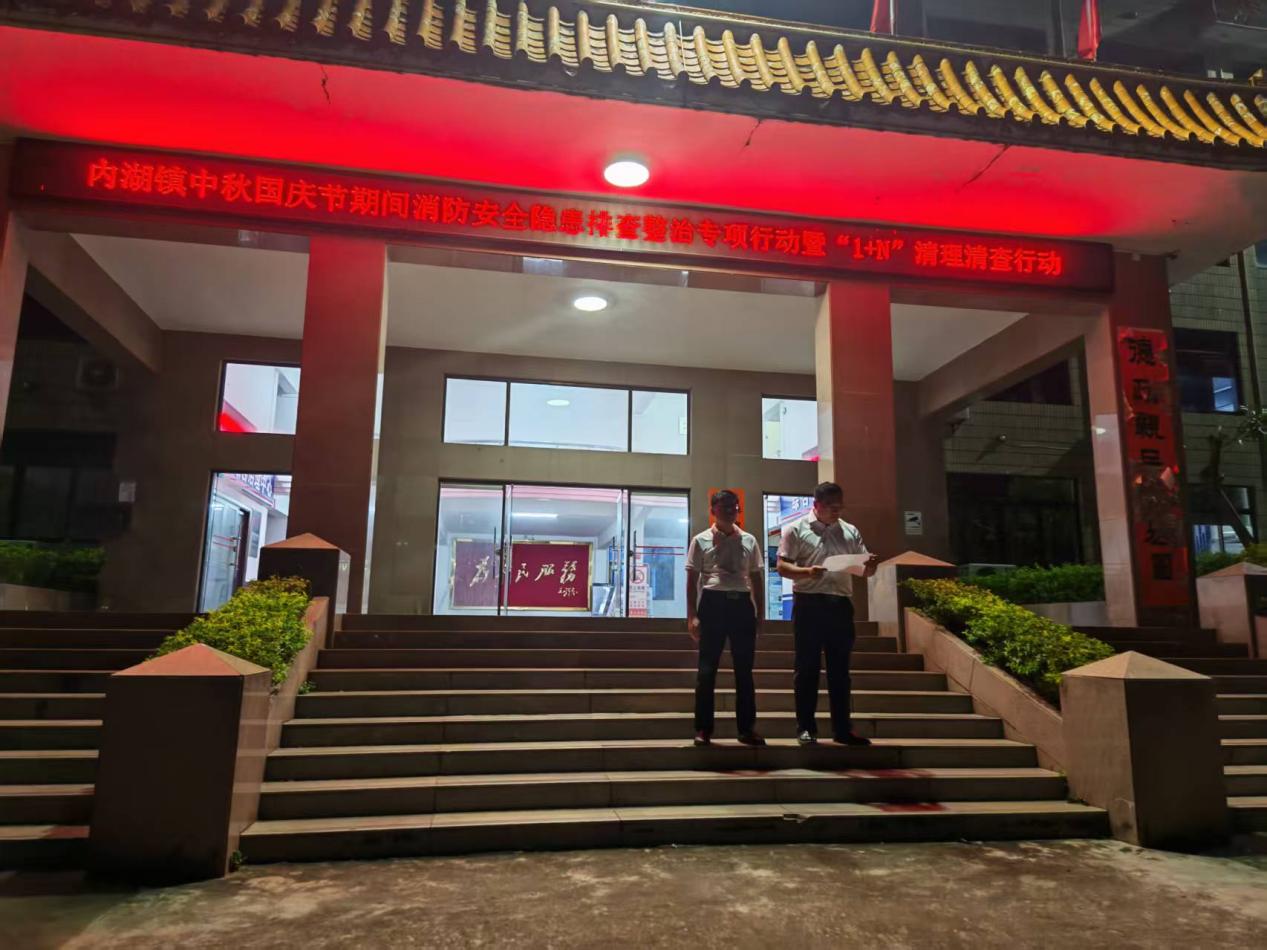 為貫徹落實(shí)習(xí)近平總書記關(guān)于安全生產(chǎn)的重要指示精神,牢固樹立“人民至上、生命至上”理念,做好“國(guó)慶”“中秋”雙節(jié)期間社會(huì)面治安穩(wěn)定和消防安全工作,方能營(yíng)造平安穩(wěn)定的社會(huì)環(huán)境。“雙節(jié)”期間,各類活動(dòng)增多,用火用電頻繁,火災(zāi)風(fēng)險(xiǎn)加劇。為保障群眾生命財(cái)產(chǎn)安全,切實(shí)加強(qiáng)我鎮(zhèn)消防安全工作,有效預(yù)防消防安全事故發(fā)生,10月1日晚上,內(nèi)湖鎮(zhèn)組織鎮(zhèn)應(yīng)急辦、執(zhí)法隊(duì)、消防隊(duì)、內(nèi)湖派出所、內(nèi)湖村兩委干部、全鎮(zhèn)網(wǎng)格聯(lián)防員,對(duì)內(nèi)湖轄區(qū)內(nèi)開展國(guó)慶、中秋期間安全隱患排查整治專項(xiàng)行動(dòng)暨“1+N”清理清查行動(dòng)。
