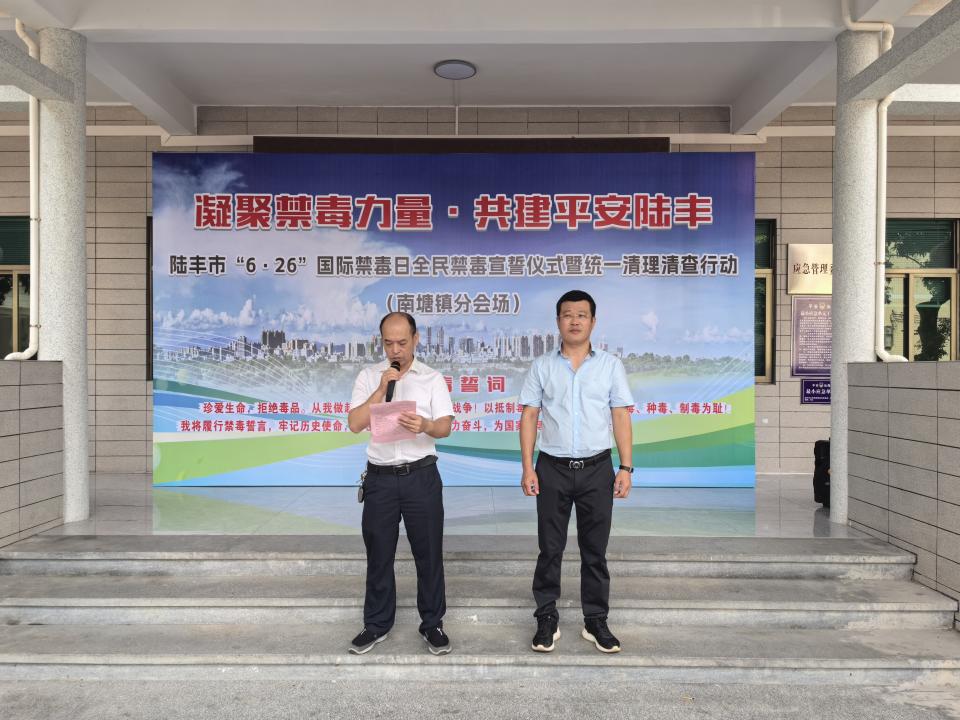 在“6.26”國際禁毒日到來之際,根據(jù)市委、市政府的統(tǒng)一部署,南塘鎮(zhèn)鎮(zhèn)組織鎮(zhèn)全體班子成員、干部職工,各村(社區(qū))支部書記,南塘派出所、南塘交警中隊民(輔)警,全鎮(zhèn)網(wǎng)格聯(lián)防員同步參與全市“凝聚禁毒力量·共建平安陸豐”全民禁毒宣誓儀式暨統(tǒng)一清理清查行動。