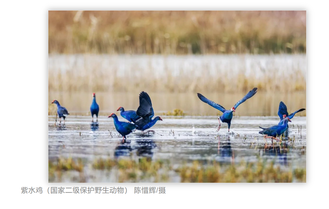 省林業(yè)調(diào)查規(guī)劃院在濕地核心位置安裝的智能監(jiān)測(cè)桿拍攝到多份紫水雞、蒼鷺斑嘴鴨等鳥類的活動(dòng)影像。根據(jù)近兩年來(lái)省林業(yè)調(diào)查規(guī)劃院監(jiān)測(cè)和觀鳥愛(ài)好者通過(guò)觀測(cè)及拍攝記錄的數(shù)據(jù),截至2025年4月,在東山村濕地記錄到的鳥類有101種,其中國(guó)家重點(diǎn)保護(hù)鳥類有27種,包括黑臉琵鷺、東方白鸛、彩鸛等國(guó)家一級(jí)保護(hù)野生動(dòng)物7種,紫水雞、白琵鷺、小天鵝、褐翅鴉鵑等國(guó)家二級(jí)保護(hù)野生動(dòng)物20種。