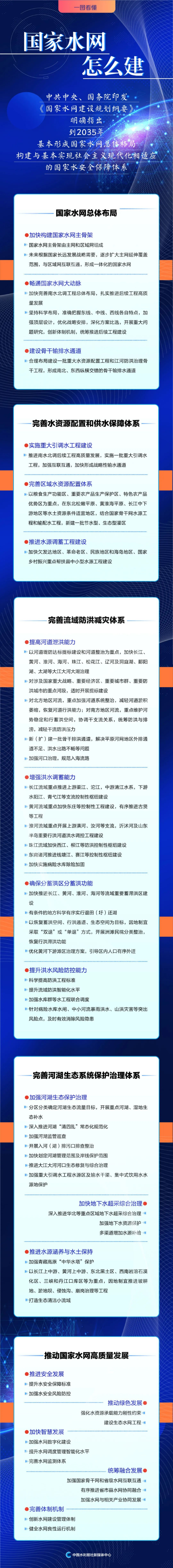 中共中央、國(guó)務(wù)院印發(fā)《國(guó)家水網(wǎng)建設(shè)規(guī)劃綱要》明確指出到2035年基本形成國(guó)家水網(wǎng)總體格局構(gòu)建與基本實(shí)現(xiàn)社會(huì)主義現(xiàn)代化相適應(yīng)的國(guó)家水安全保障體系國(guó)家水網(wǎng)要怎么建?一圖看懂