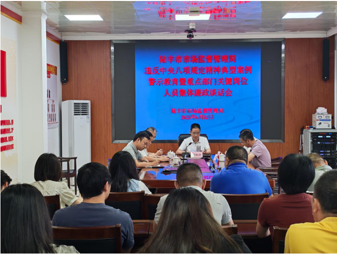 陸豐市市場(chǎng)監(jiān)督管理局召開違反中央八項(xiàng)規(guī)定精神典型案例警示教育暨重點(diǎn)部門關(guān)鍵崗位人員集體廉政談話會(huì)