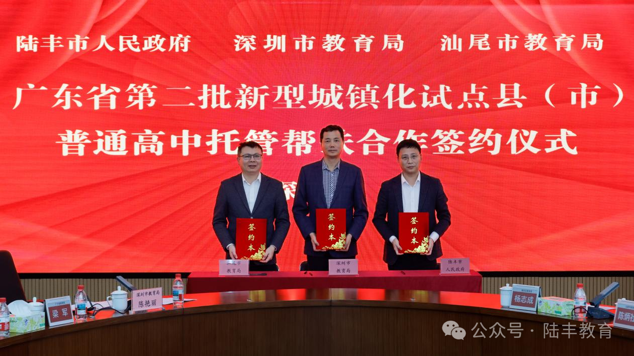 2026年1月15日,深圳市組團(tuán)式融入式托管幫扶第二批新型城鎮(zhèn)化試點(diǎn)縣(市)普通高中簽約儀式在深圳市第二高級(jí)中學(xué)舉行。陸豐市人民政府、深圳市教育局、汕尾市教育局共同簽署《深圳市組團(tuán)式融入式托管幫扶陸豐市龍山中學(xué)框架協(xié)議》,標(biāo)志著深圳大學(xué)附屬中學(xué)與陸豐市龍山中學(xué)托管幫扶工作正式啟動(dòng)。