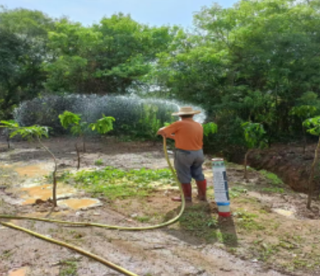 垃圾清理完成后,參與人員迅速投入植樹(shù)活動(dòng)。根據(jù)山林生態(tài)特點(diǎn),科學(xué)規(guī)劃種植區(qū)域,選取適宜本地生長(zhǎng)的芒果樹(shù) 48 株。在指導(dǎo)下,大家分工明確,揮鍬鏟土、扶苗填坑、澆水固根,經(jīng)過(guò)數(shù)小時(shí)努力,一排排新苗整齊挺立,為山林增添生機(jī)與綠意。