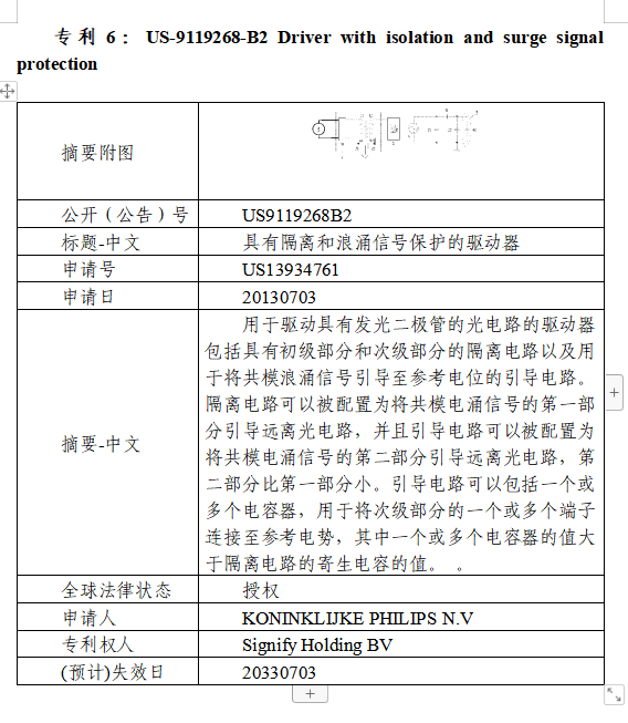 2023年7月14日,Signify在美國(guó)特拉華州地方法院向Current提起2起專(zhuān)利侵權(quán)訴訟(案號(hào):1:23-cv-00767、1:23-cv-00769),指控Current侵犯了其9項(xiàng)專(zhuān)利權(quán)。此外,Signify還于同日在美國(guó)國(guó)際貿(mào)易委員會(huì)向Current提起337調(diào)查(調(diào)查編碼:337-TA-1371),主張對(duì)美出口、在美進(jìn)口和在美銷(xiāo)售的該產(chǎn)品侵犯了3項(xiàng)專(zhuān)利權(quán),請(qǐng)求美國(guó)ITC發(fā)布有限排除令、禁止令。