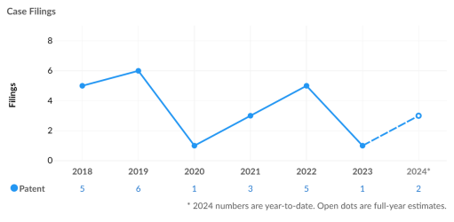 根據(jù)統(tǒng)計(jì)數(shù)據(jù),原告在美國(guó)共涉及23起專(zhuān)利侵權(quán)訴訟,全部為主動(dòng)發(fā)起。從訴訟趨勢(shì)上看,原告自2018年以來(lái)每年均發(fā)起訴訟,訴訟趨勢(shì)處于上升階段。