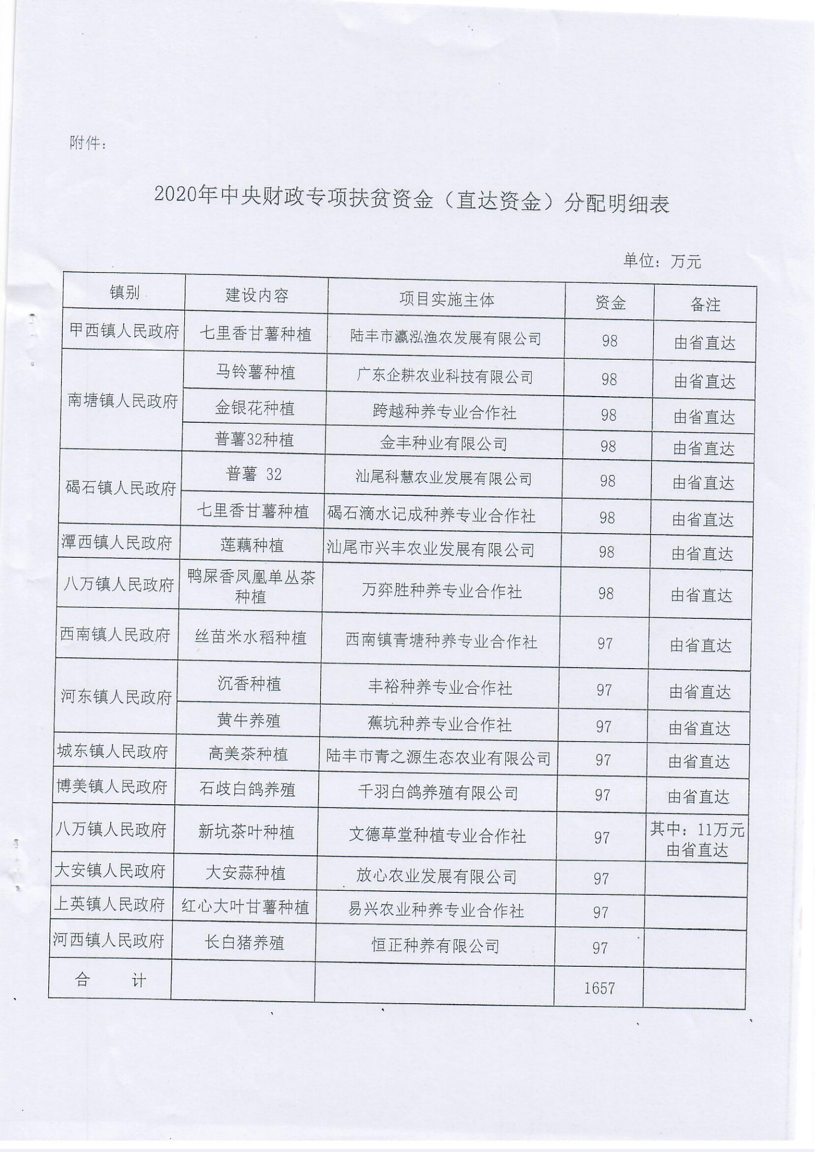 關(guān)于下達《陸豐市2020年中央財政專項扶貧資金17個“一村一品”項目》建設(shè)資金的通知