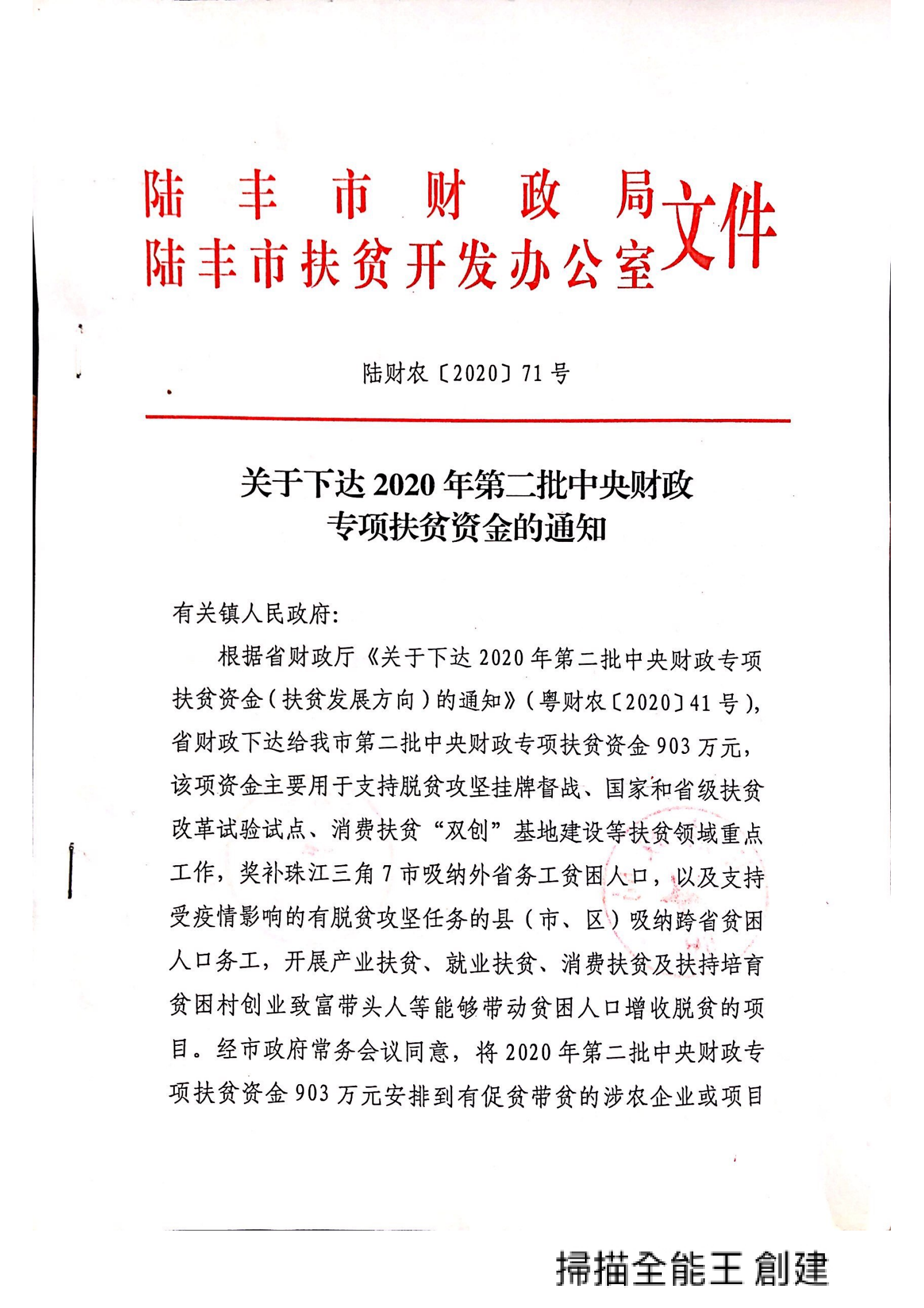 關(guān)于下達(dá)2020年第二批中央財(cái)政專項(xiàng)扶貧資金的通知