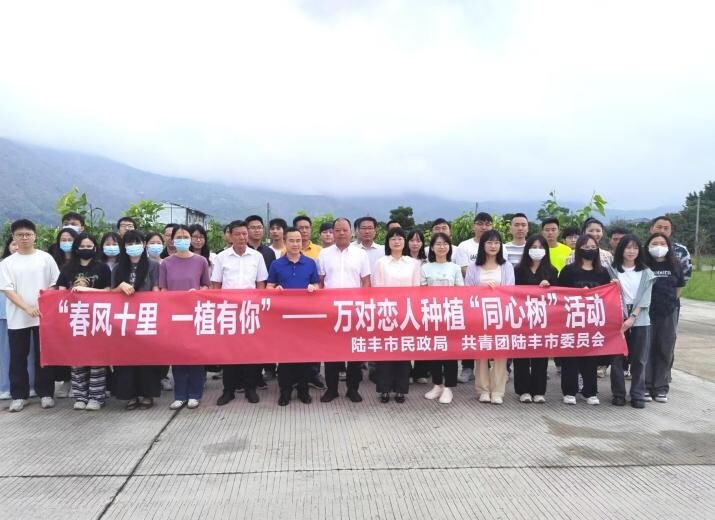 為深入學習貫徹習近平生態(tài)文明思想,貫徹落實“百千萬工程”和“綠美生態(tài)”建設的工作要求,引導廣大新人崇尚婚嫁新風,助力綠美陸豐生態(tài)建設。根據市委、市政府綠美生態(tài)建設工作部署和汕尾市綠委辦《關于印發(fā)<汕尾市全民義務植樹暨“十個萬”主題植樹活動工作方案>的通知》、汕尾市民政局 共青團汕尾市委員會《關于印發(fā)<萬對戀人種植“同心樹”活動工作方案>的通知》文件精神,持續(xù)深入開展全民義務植樹活動,掀起全民義務植樹熱潮,助推綠美陸豐建設生態(tài)建設。5月20日,市民政局、團市委、金廂鎮(zhèn)組織青年志愿者及青年戀人到金廂鎮(zhèn)下埔村開展“春風十里 一植有你”---萬對戀人種植同心樹活動。