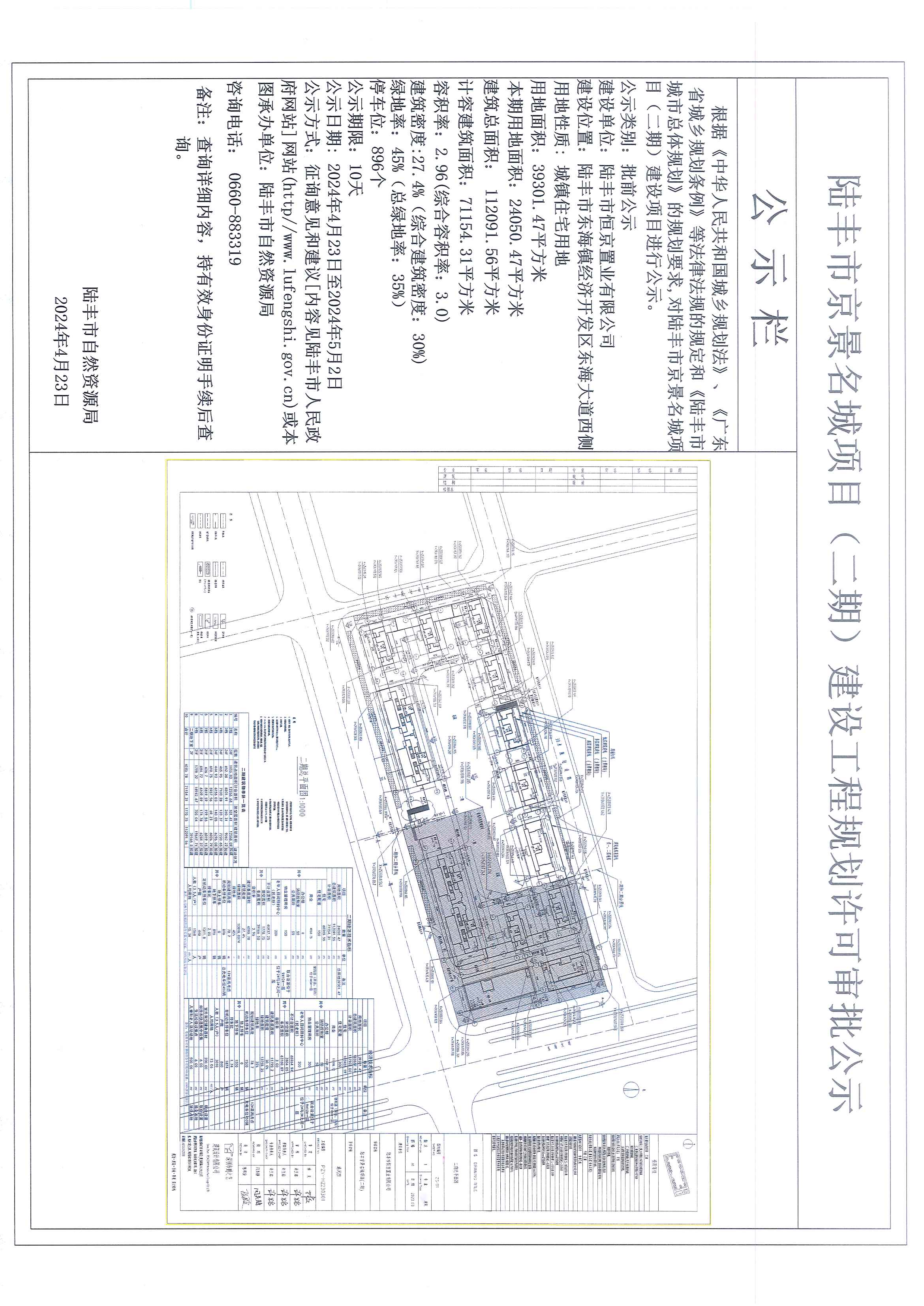 陸豐市京景名城項目(二期)建設工程規(guī)劃許可審批公示