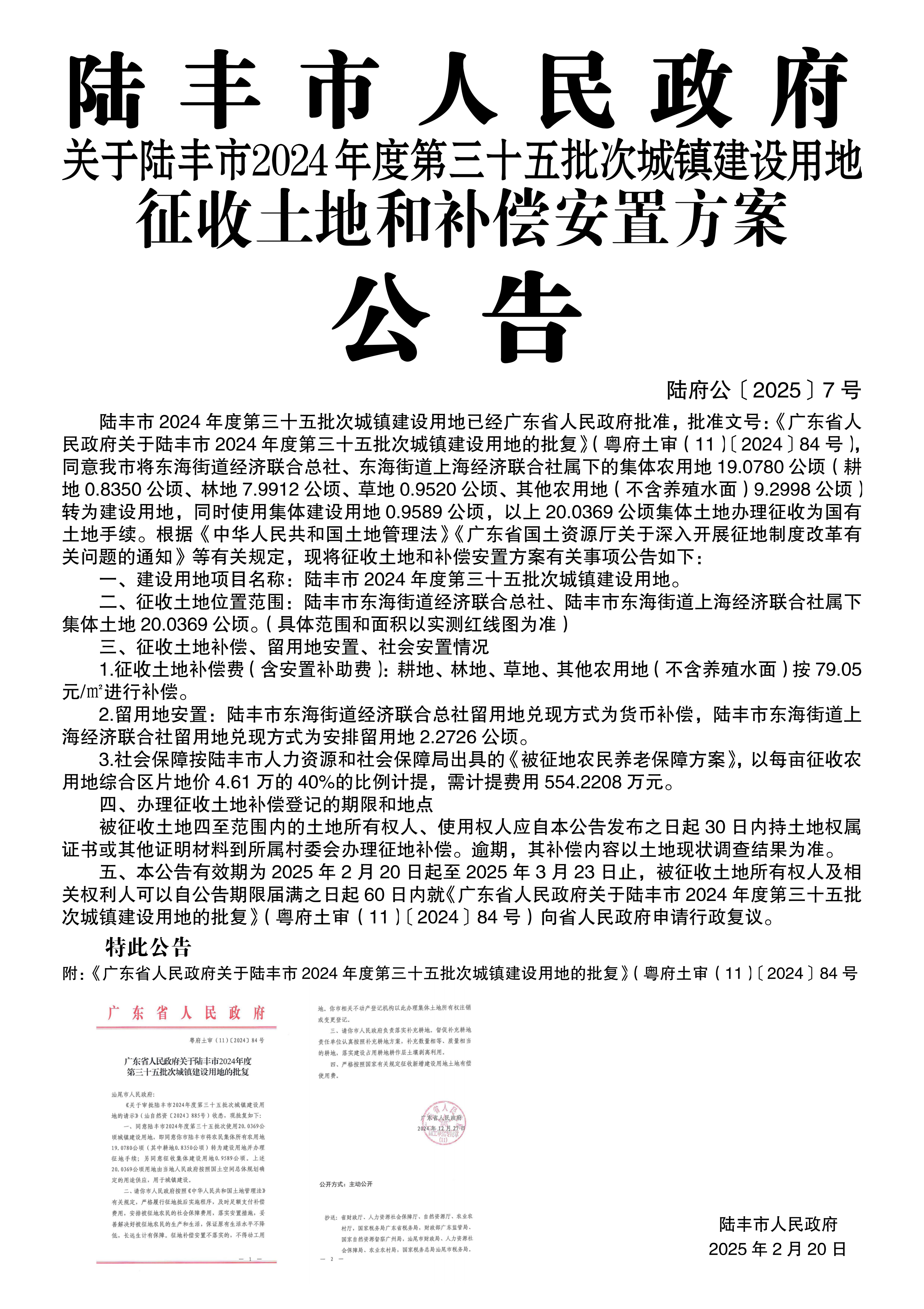 廣東省人民政府關(guān)于陸豐市 2024年度第三十五批次城鎮(zhèn)建設(shè)用地的批復(fù)(粵府土審(11)〔2024〕84號(hào))
