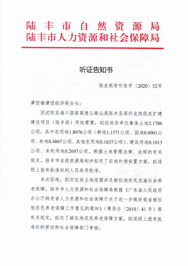 聽證告知書(陸自然資聽告字[2020]52號)