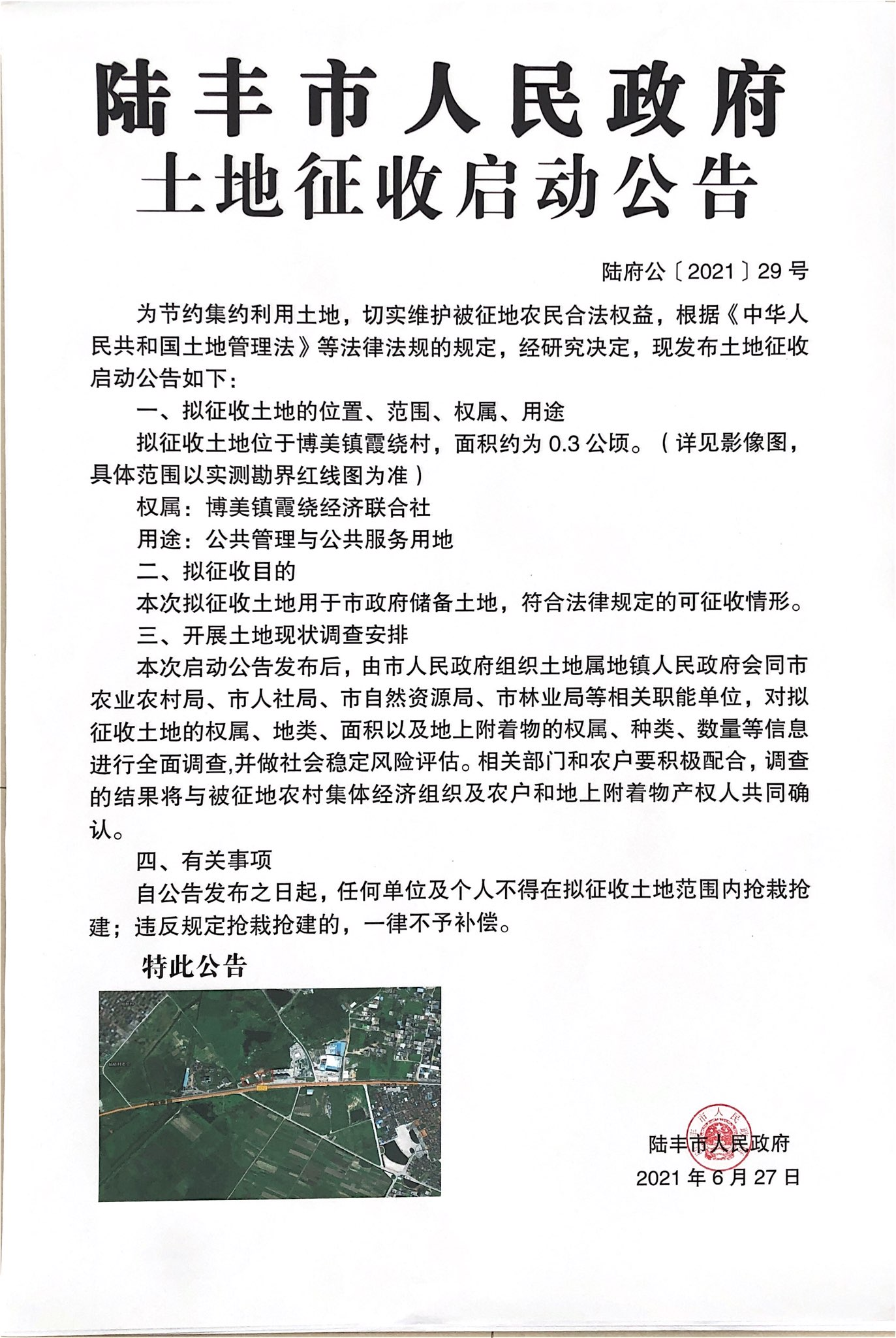 陸豐市人民政府土地征收啟動公告-陸府公[2021]29號)