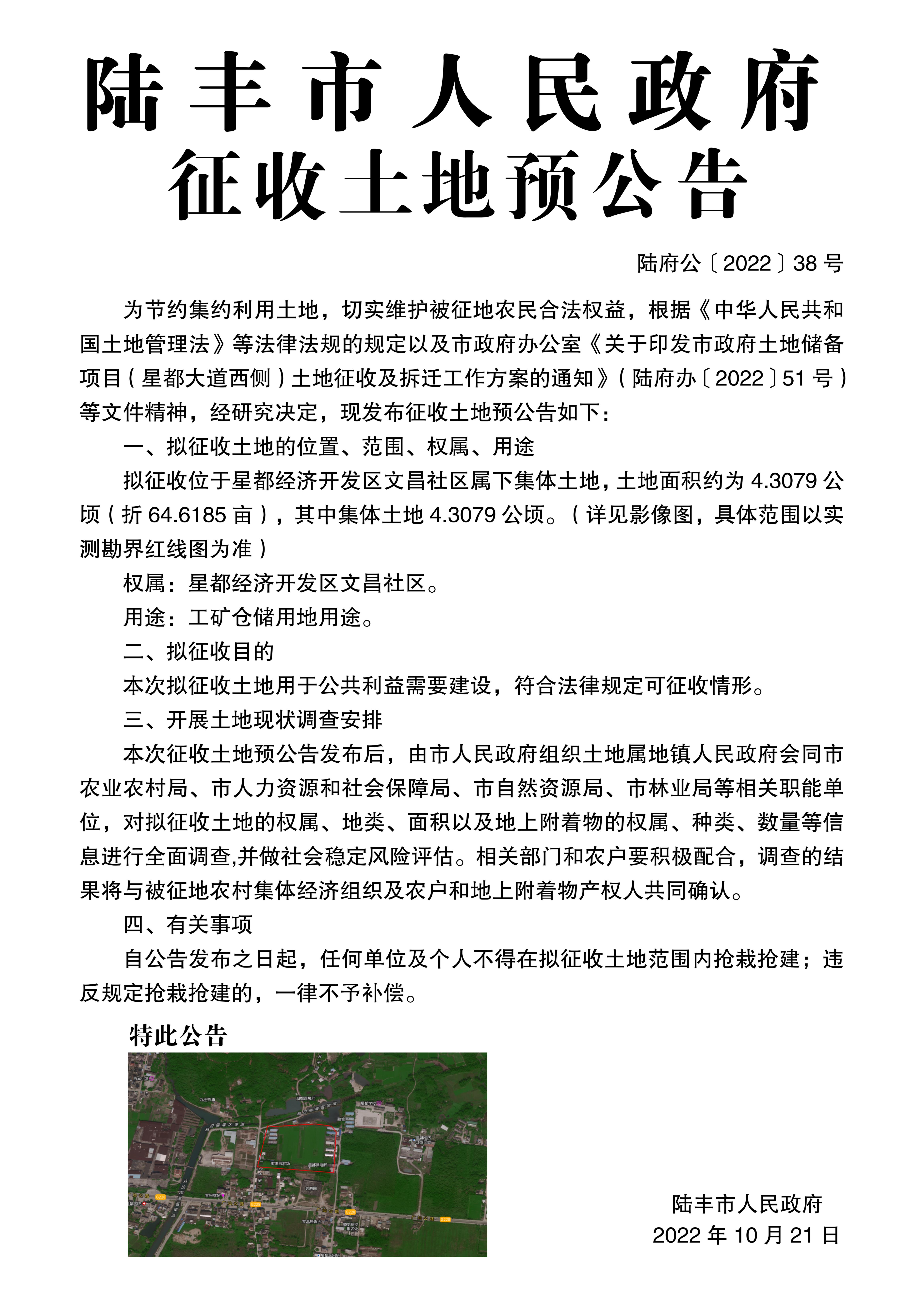 陸豐市人民政府征收土地預(yù)公告(陸府公[2022]38號(hào))
