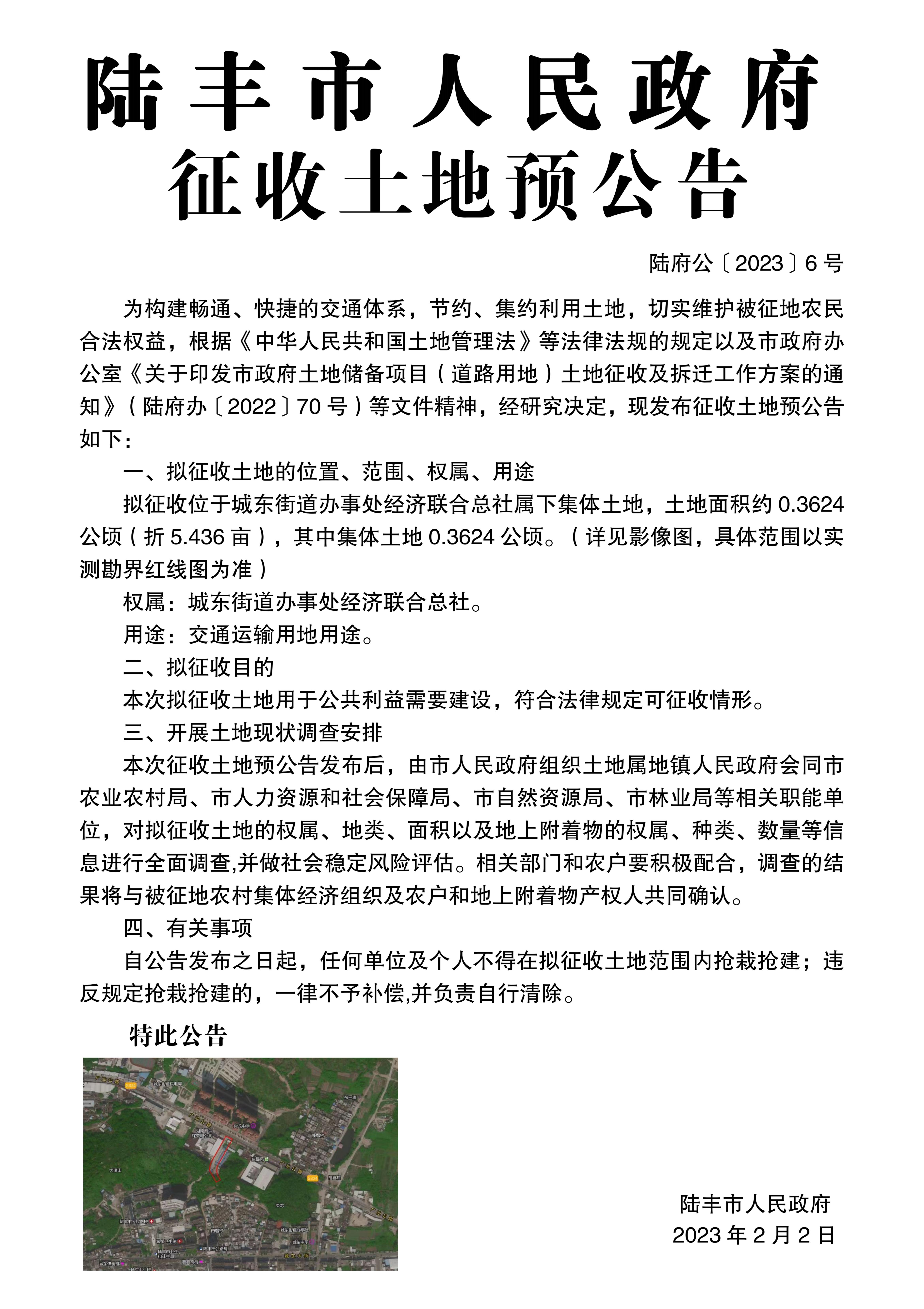 陸豐市人民政府征收土地預(yù)公告(陸府公[2023]6號(hào))