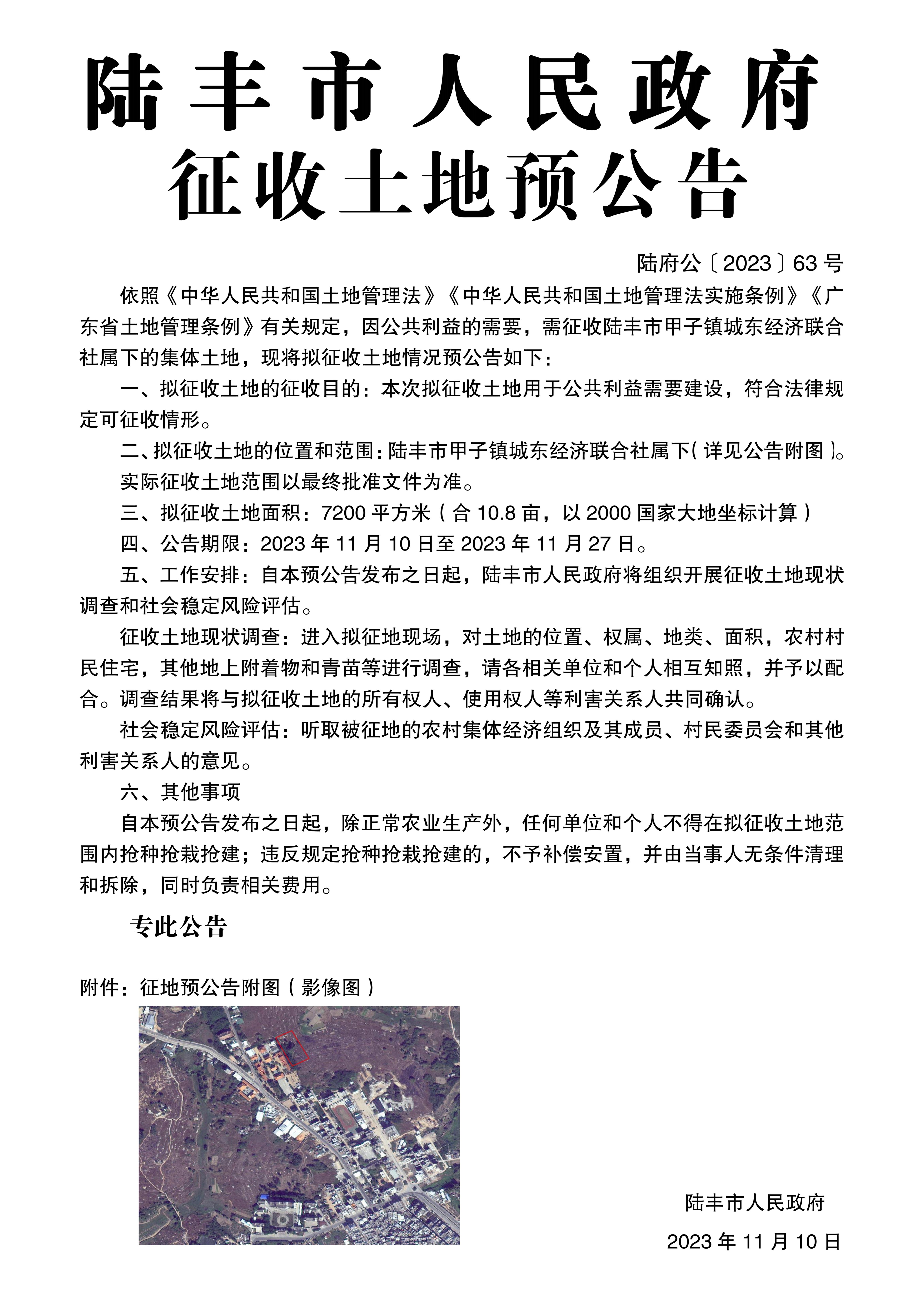 陸豐市人民政府關(guān)于征收土地預(yù)公告(陸府公〔2023〕63號)