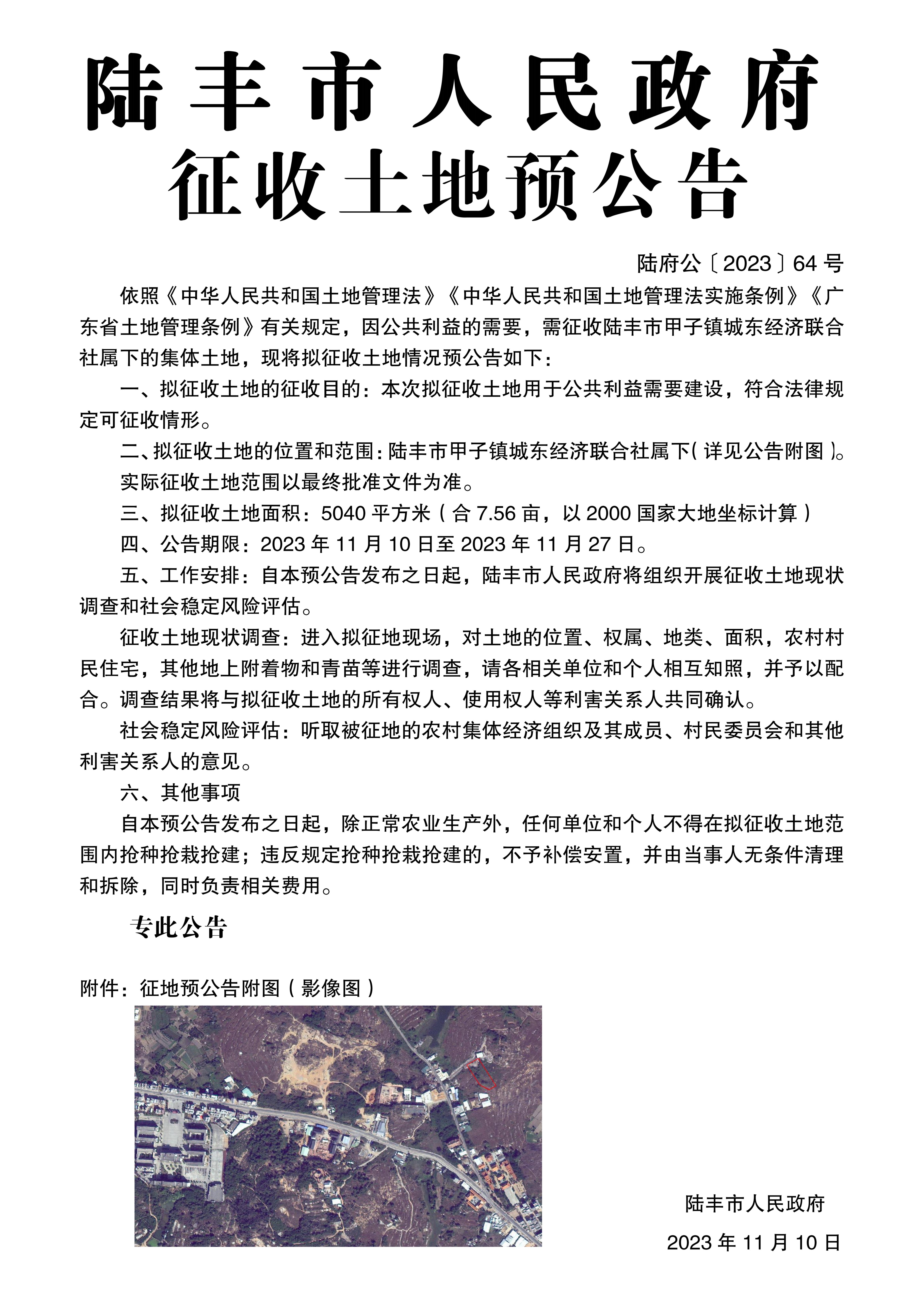 陸豐市人民政府關(guān)于征收土地預(yù)公告(陸府公〔2023〕64號)