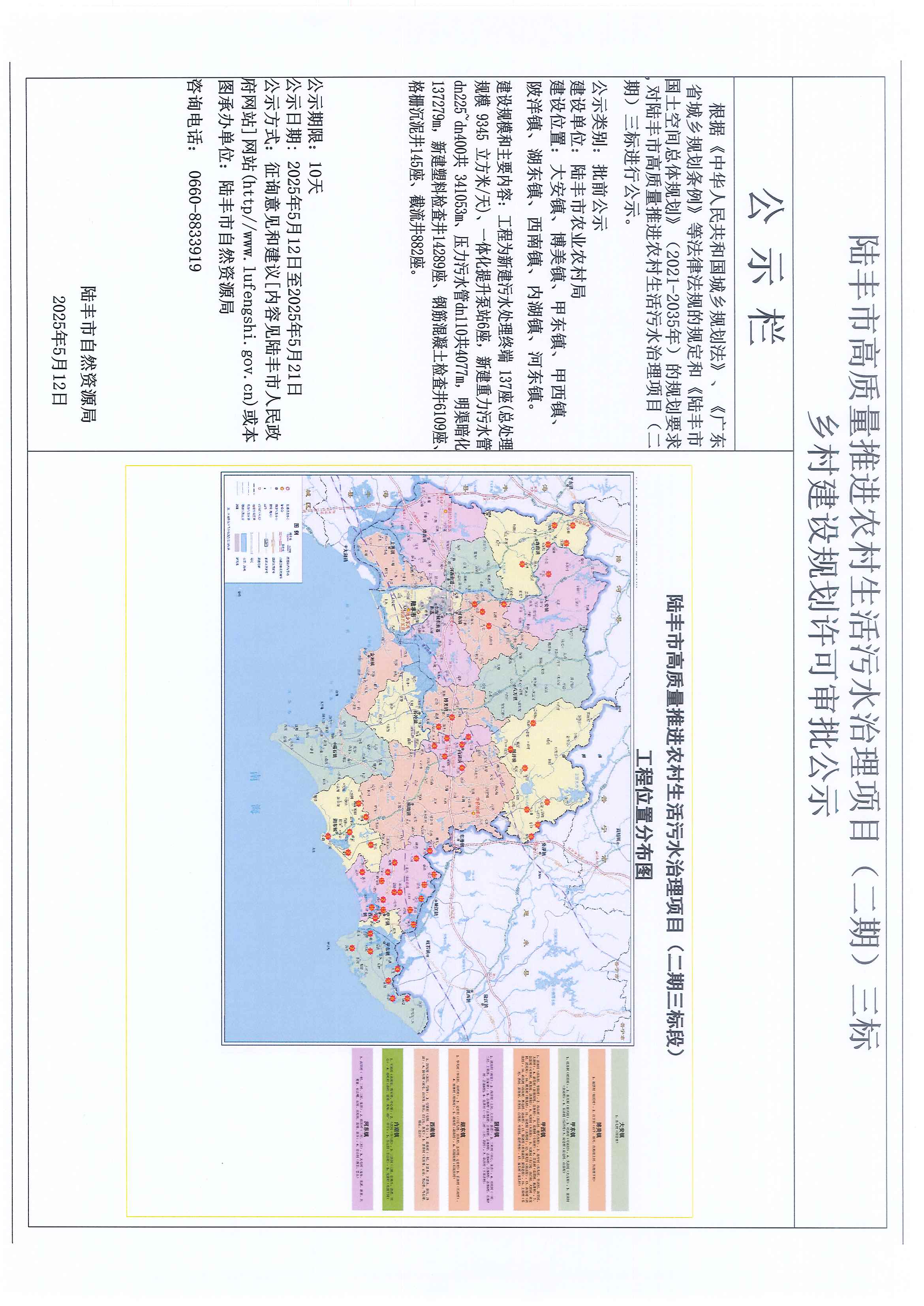 陸豐市高質(zhì)量推進(jìn)農(nóng)村生活污水治理項目(二期)三標(biāo)鄉(xiāng)村建設(shè)規(guī)劃許可審批公示