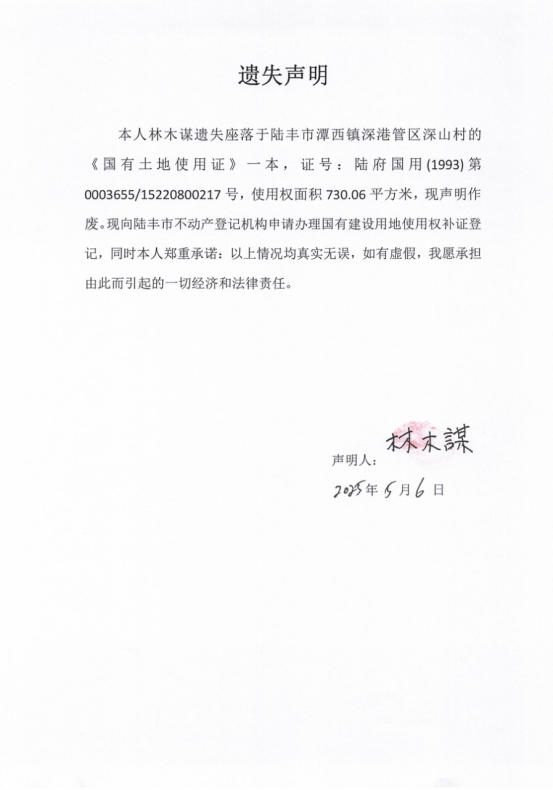 林木謀因遺失下列《國(guó)有土地使用證》向我局申請(qǐng)補(bǔ)發(fā)證登記,根據(jù)《不動(dòng)產(chǎn)登記暫行條例實(shí)施細(xì)則》第二十二條的規(guī)定,現(xiàn)公告作廢。