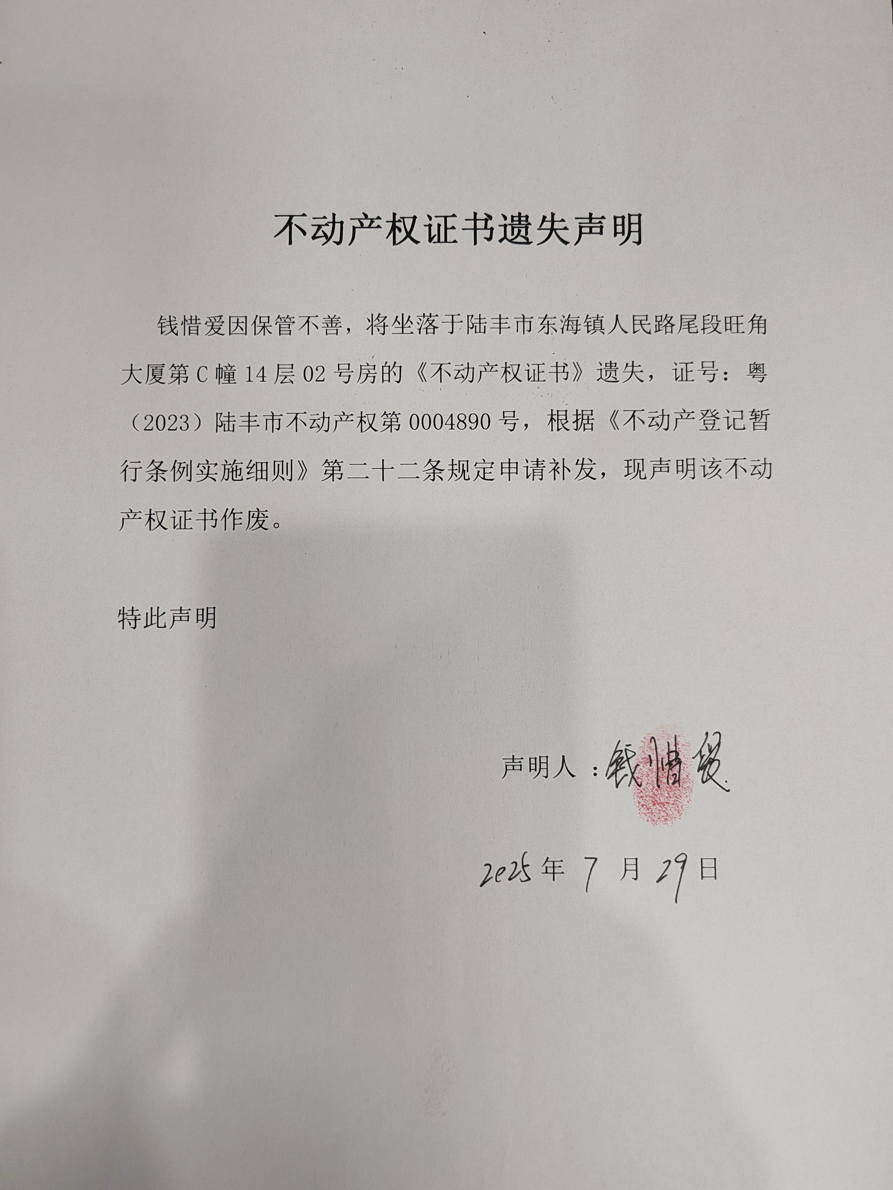 不動(dòng)產(chǎn)權(quán)證書作廢公告