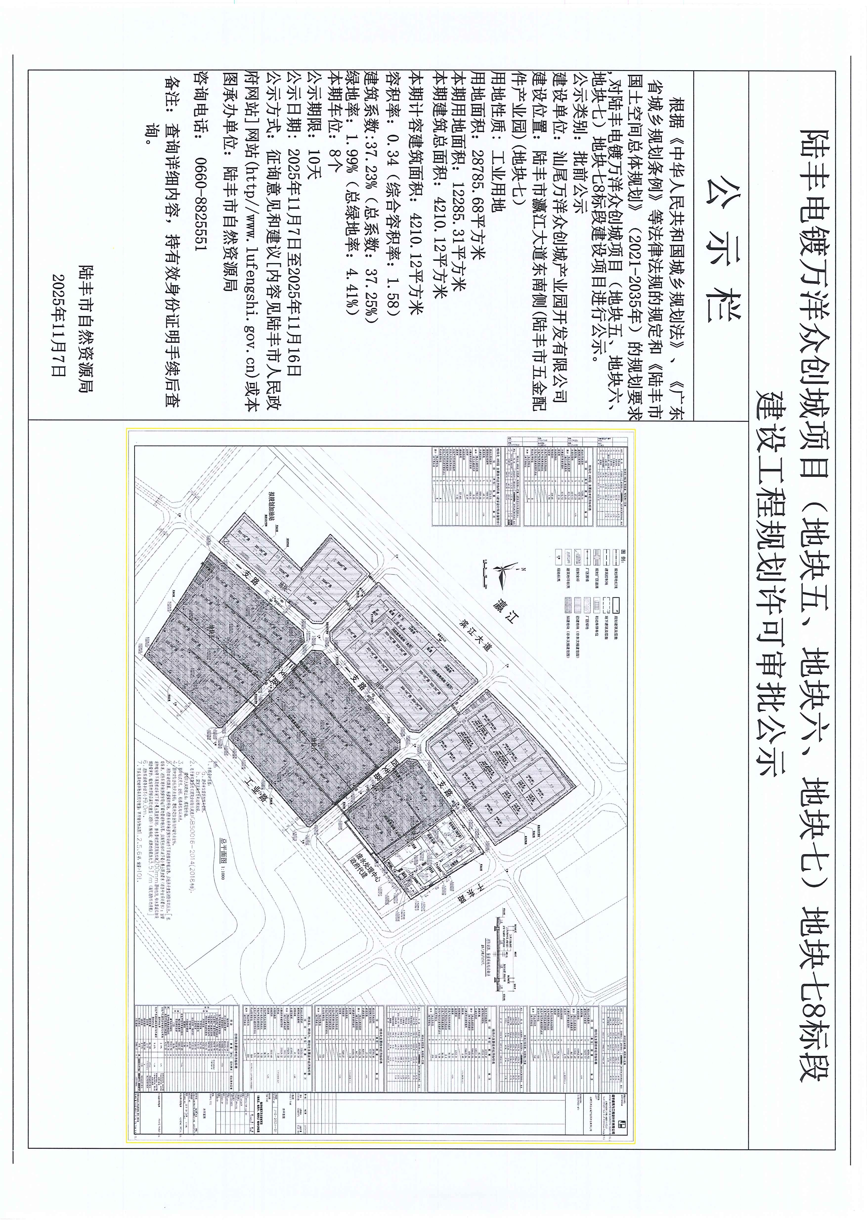陸豐電鍍?nèi)f洋眾創(chuàng)城項目(地塊五、地塊六、地塊七)地塊七8標段建設(shè)工程規(guī)劃許可審批公示