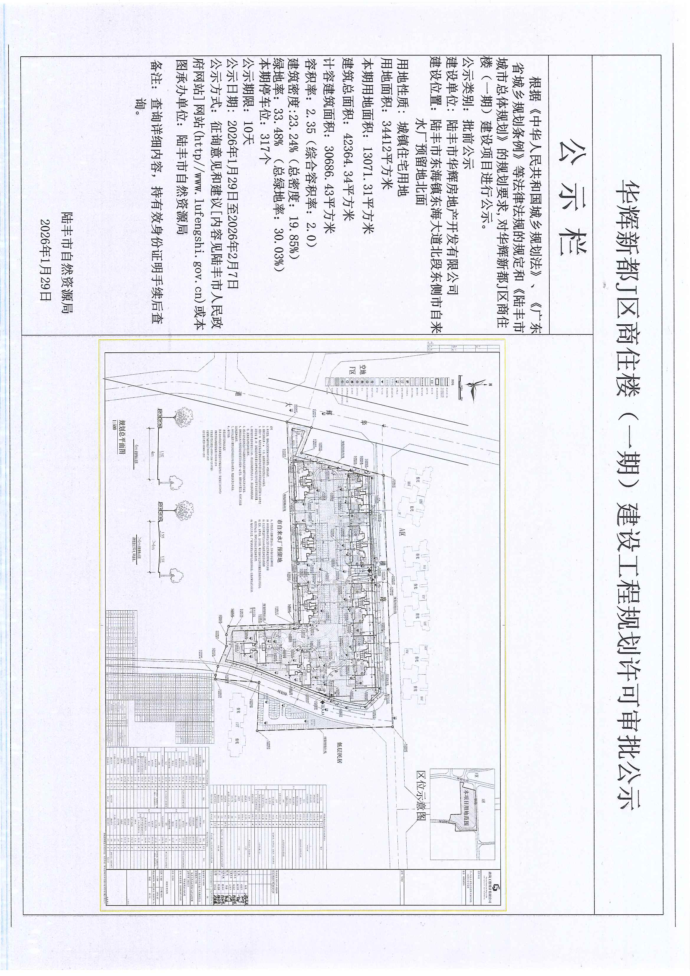 華輝新都J區(qū)商住樓(一期)建設(shè)工程規(guī)劃許可審批公示