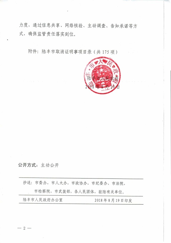 陸豐市人民政府關(guān)于公布陸豐市取消證明事項(xiàng)目錄的通知